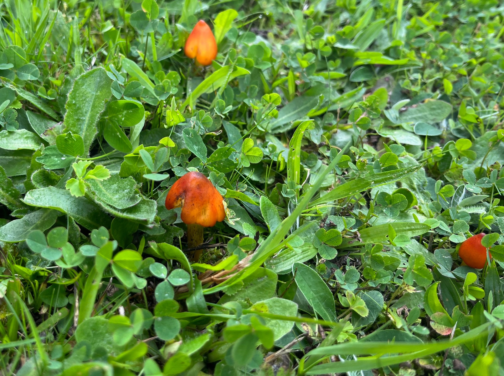 Zunächst einmal die recht häufenden schwärzenden Saftlinge in Rot-, Orange- und Gelbtönen - Hygrocybe conica.