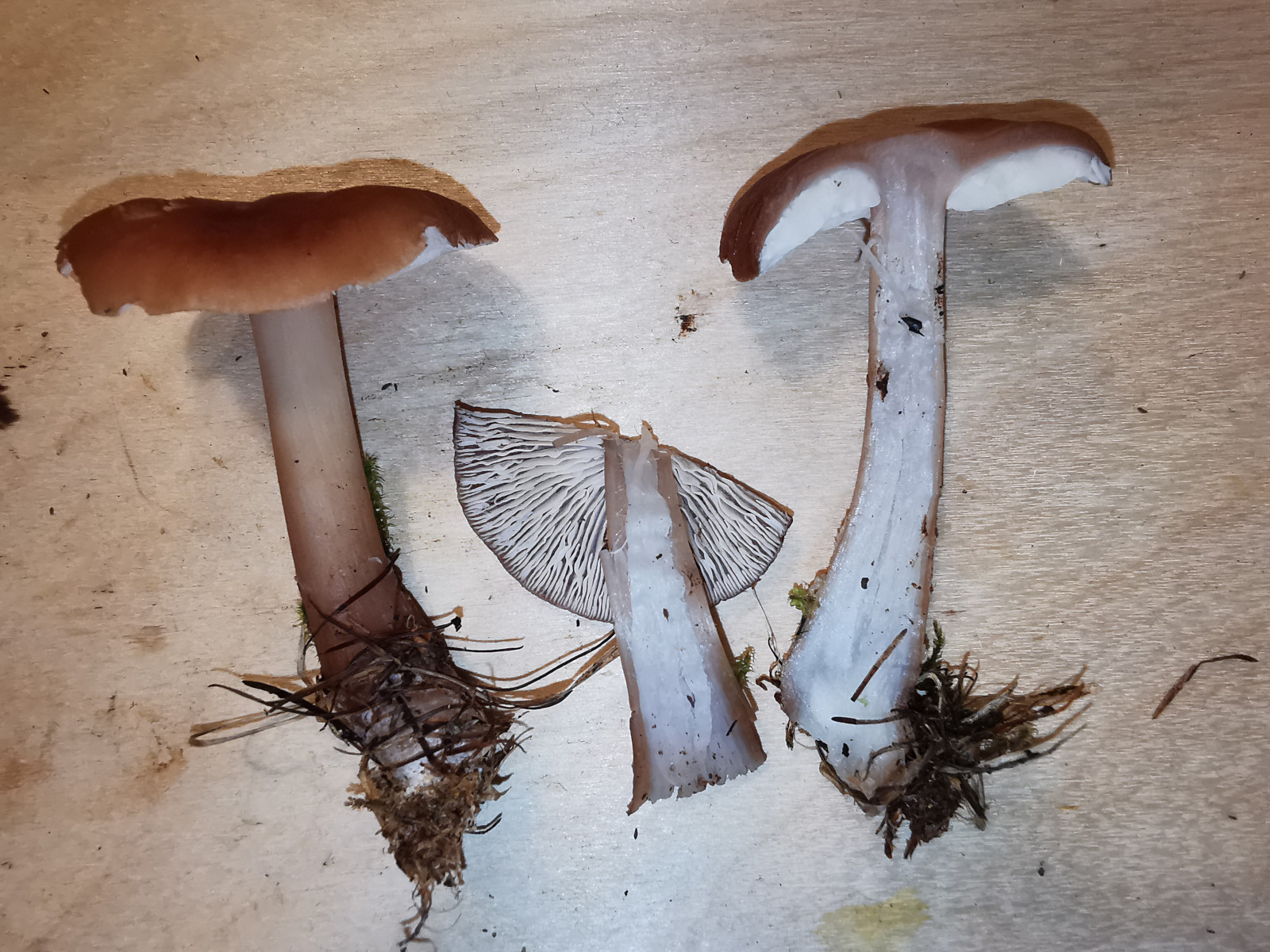 Bei einem Spaziergang im Nadelwald habe ich gestern diese Pilze gefunden. Den Geruch empfand ich als angenehm, kann ihn aber nicht genau beschreiben. Beim Schlüsseln bin ich in Richtung Kastanienbrauner Rübling - Rhodocollybia butyracea gekommen. Irgendwie kamen mir dann zwar beim Vergleichen mit Fotos aus dem Internet die Hüte nicht so wirklich passend vor, aber eine bessere Idee habe ich bis jetzt nicht. Sind die Hüte bei denen variabel oder bin ich doch komplett auf dem Holzweg? Einen Sporenabdruck habe ich noch erstellt, die Farbe ist creme und da ich gelesen habe, dass die Sporen teilweise dextrinoid sein müssten, wollte ich das auch mal testen. Sehe ich das richtig, dass diese bräunliche Verfärbung der Sporen mit Melzers darauf hindeuten, dass die Sporen dextrinoid sind, oder? Hier die Fotos: