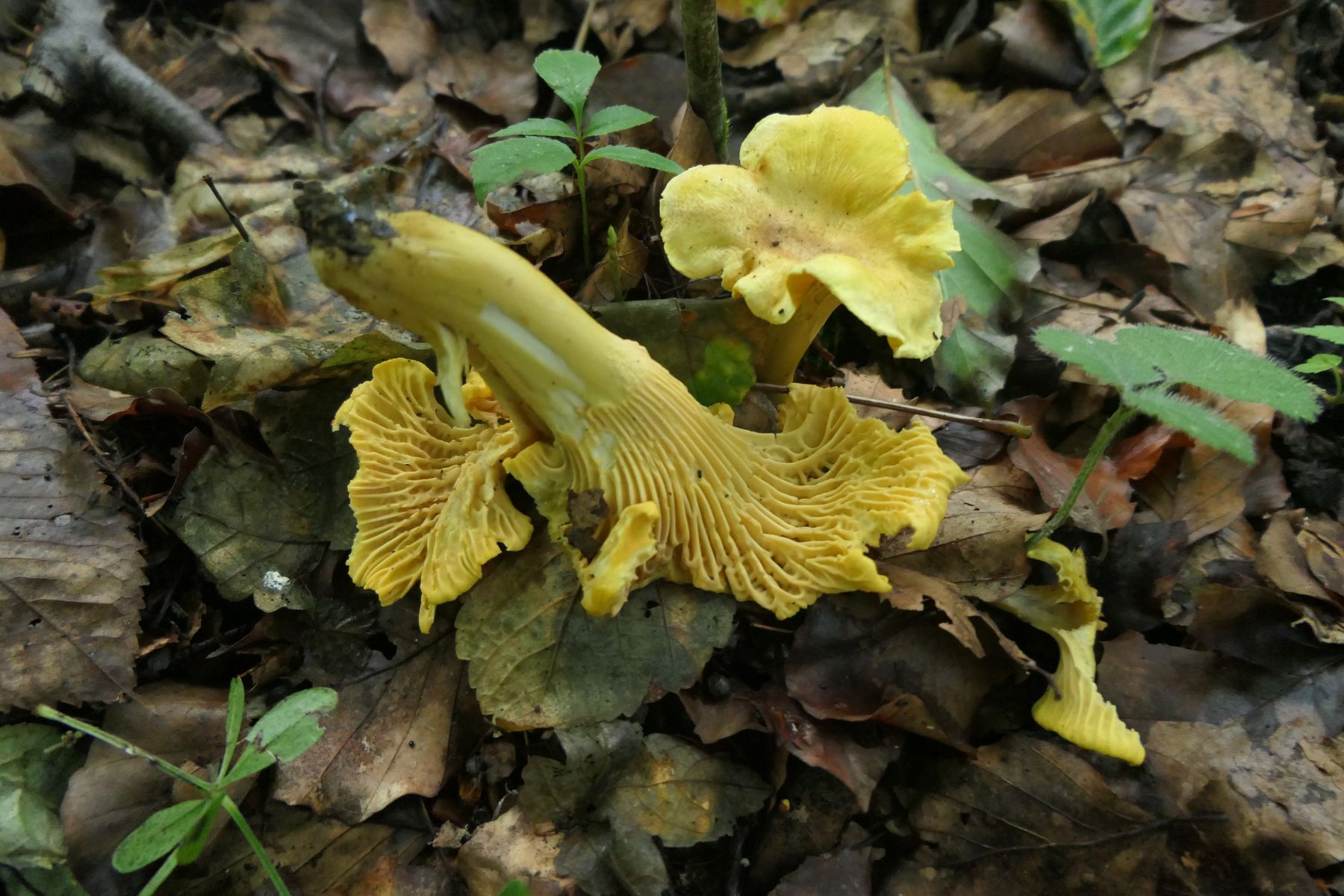 02 Cantharellus amethysteus (Quél.) Sacc. - der amethystschuppige (das ist zumindest meine Vermutung, nur wenige Fruchtkörper, hielt ich erst für cibarius, aber in der Mitte zeigte sich dann schon eine zarte Schuppung, nicht sehr ausgeprägt, aber die Art habe ich für das Gebiet definitiv schon nachweisen können: