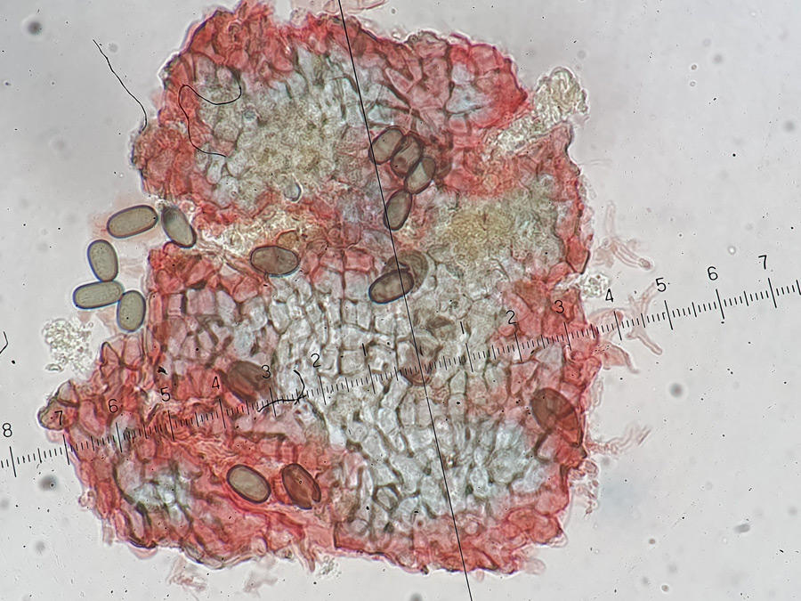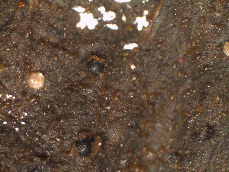 Pseudothecien rund, 400 µm im Durchmesser, kein Hals erkennbar.