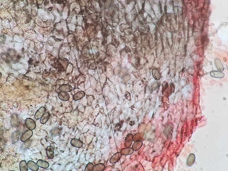 mit kurzem Hals. Die Sporen haben eine geknickte Keimspalte und die Sporenzellen zerfallen in 2-er Paaren. Das ist hier nicht der Fall. Aber vielleicht täusche ich mich. Der Pilz ist überreif.
