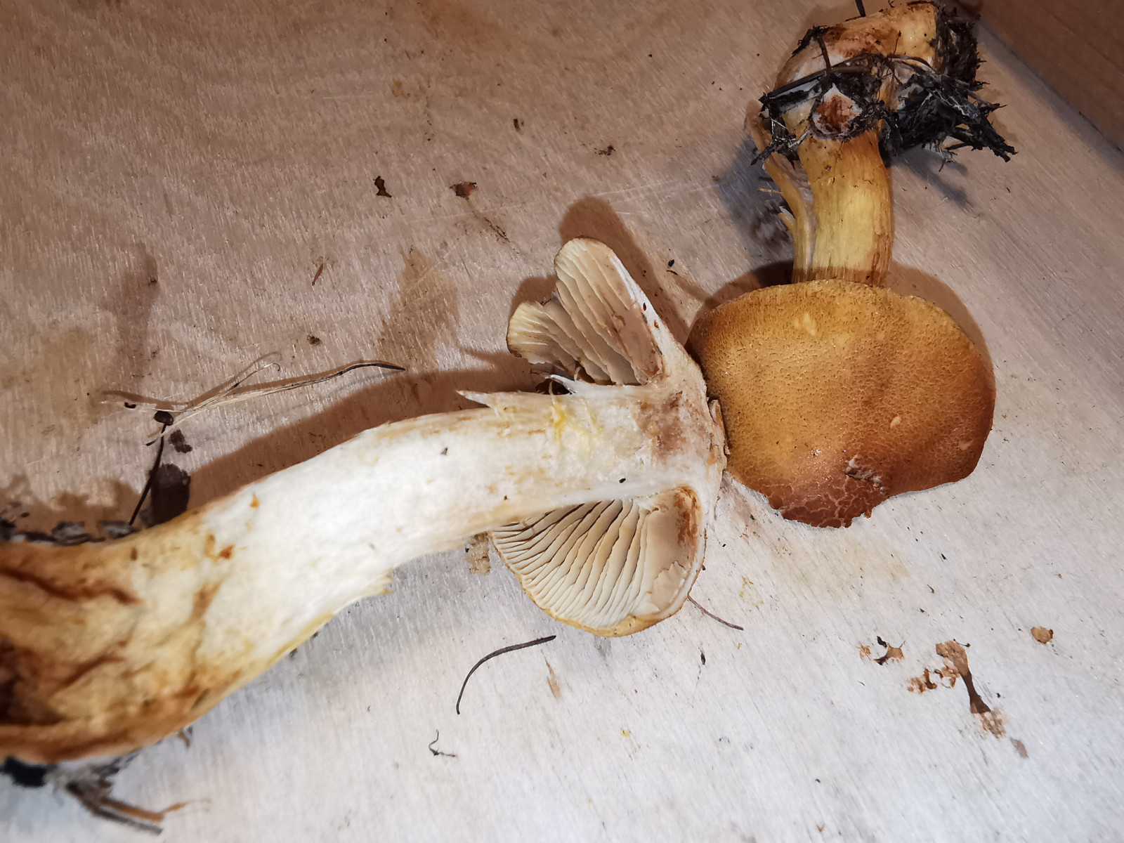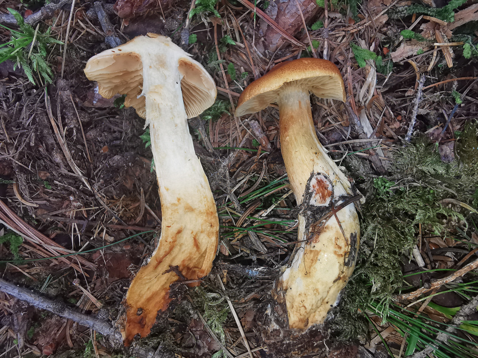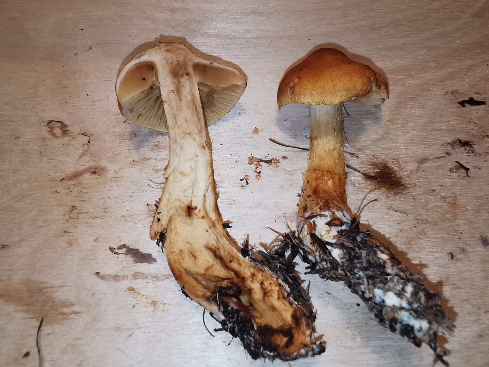 Ich habe heute, wie ich meine, etwas aus dem Rhabarberfüssigen Raukopf - Cortinarius callisteus Komplex bei einer Fichte (ca. 1800m) gefunden. Ich habe wohl schon letztes Jahr einen solchen Fund gemacht, wie ich damals dank Werner im Nachhinein herausgefunden habe. Heute wollte ich aber mal ein Exemplar zur genaueren Untersuchung mitnehmen. Der Geruch ist meiner Meinung nach wirklich sehr intensiv und er riecht wirklich deutlich nach warmem Maschinenöl (oder Lokomotiven- bzw. U-Bahngeruch). Die Stielbasis reichte auch ziemlich weit in den Boden herab. Also für mich sollte das etwas aus dem Aggregat Cortinarius callisteus sein. Seid ihr damit einverstanden?