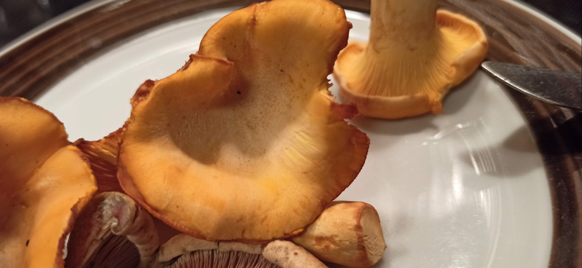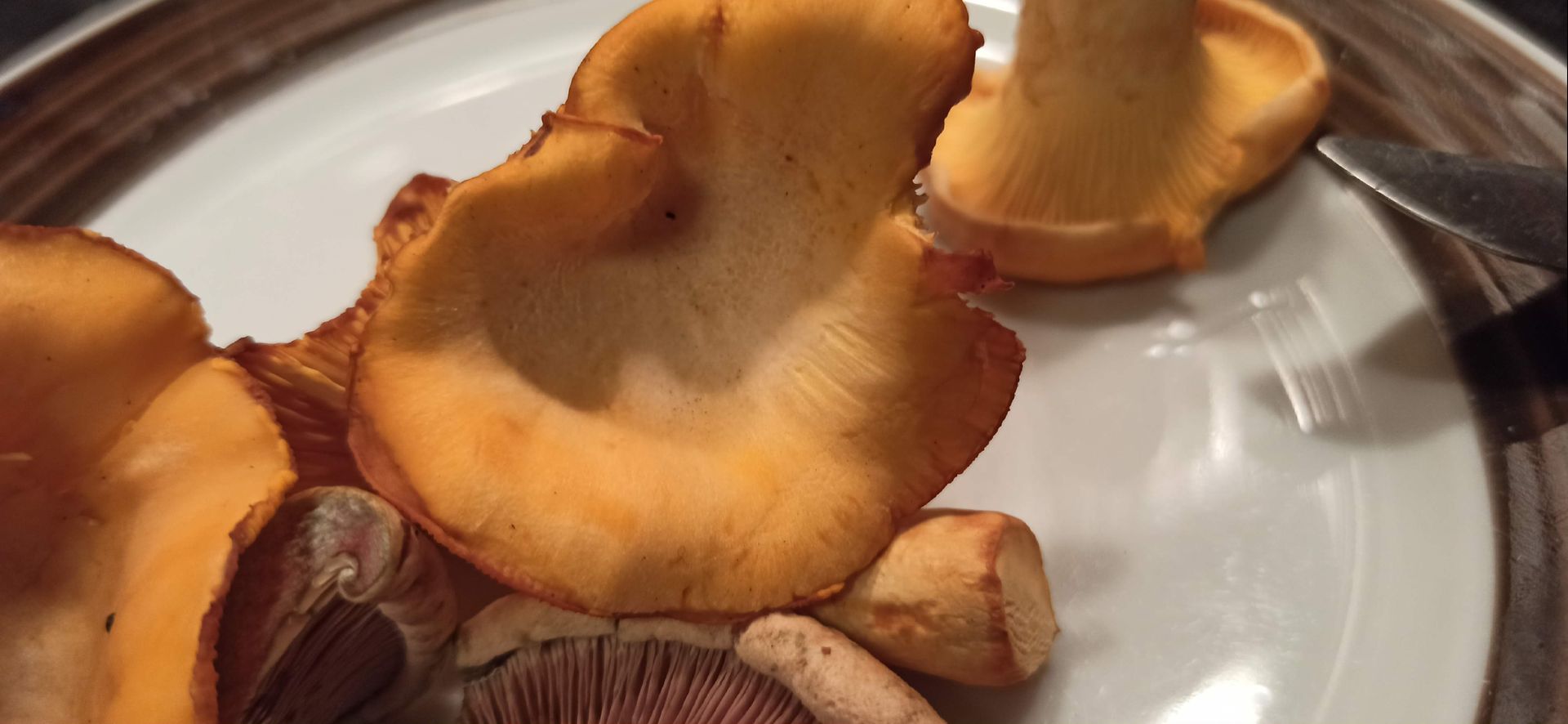 Wieder auf der Fränkischen Schweiz: Ist das der seltene SamtigePfifferling? BuchenMischwald, Hutoberfläche, weiß Samtig, ansonsten "typische" Pfifferling Größe. Entschuldigt mir bitte den Küchenaufnahmen. Lg Wastl