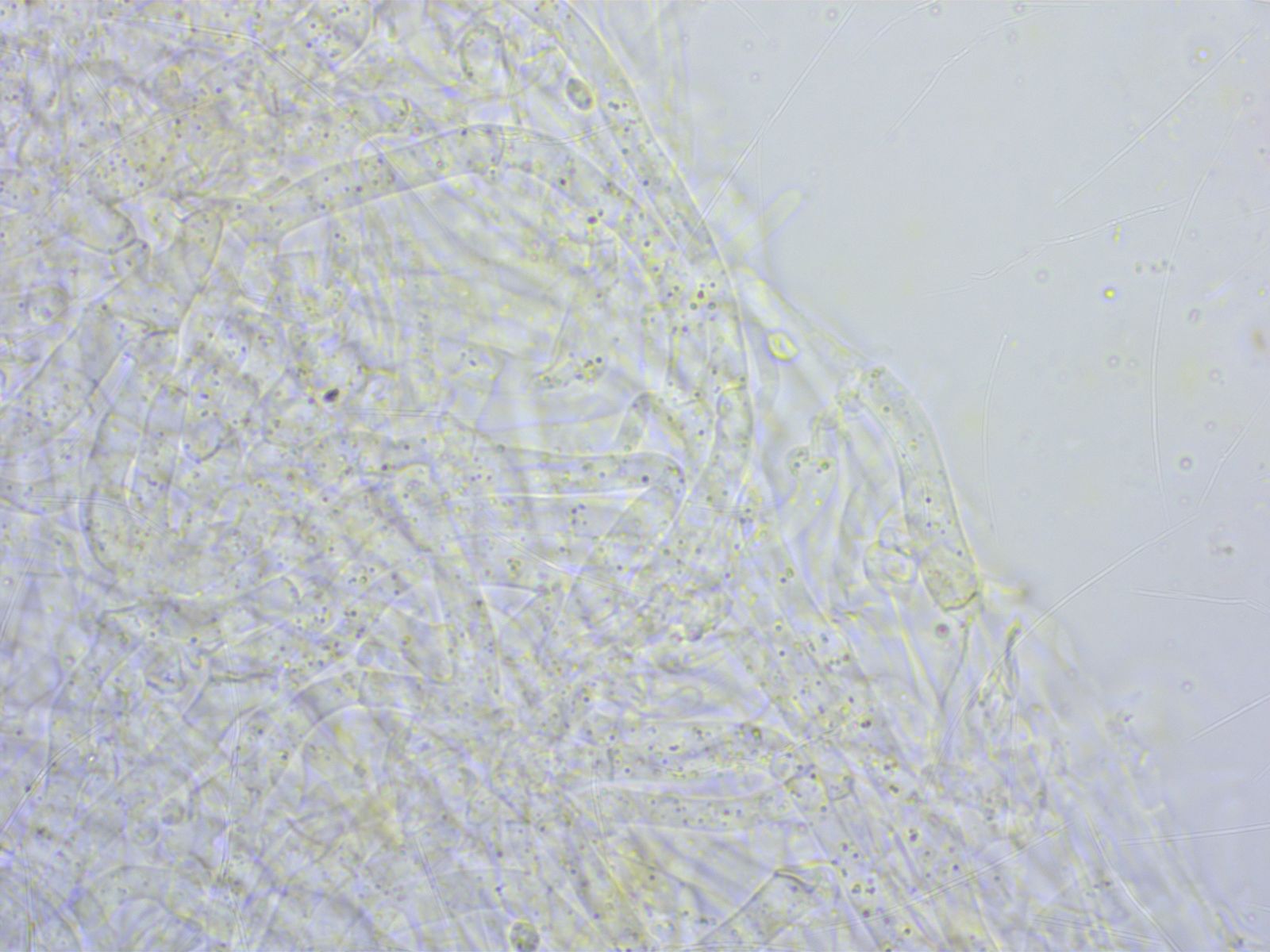 Ähnliche "Pileozystiden" findet man auf der HDS, die ansonsten eine kompakte Kutis ist.