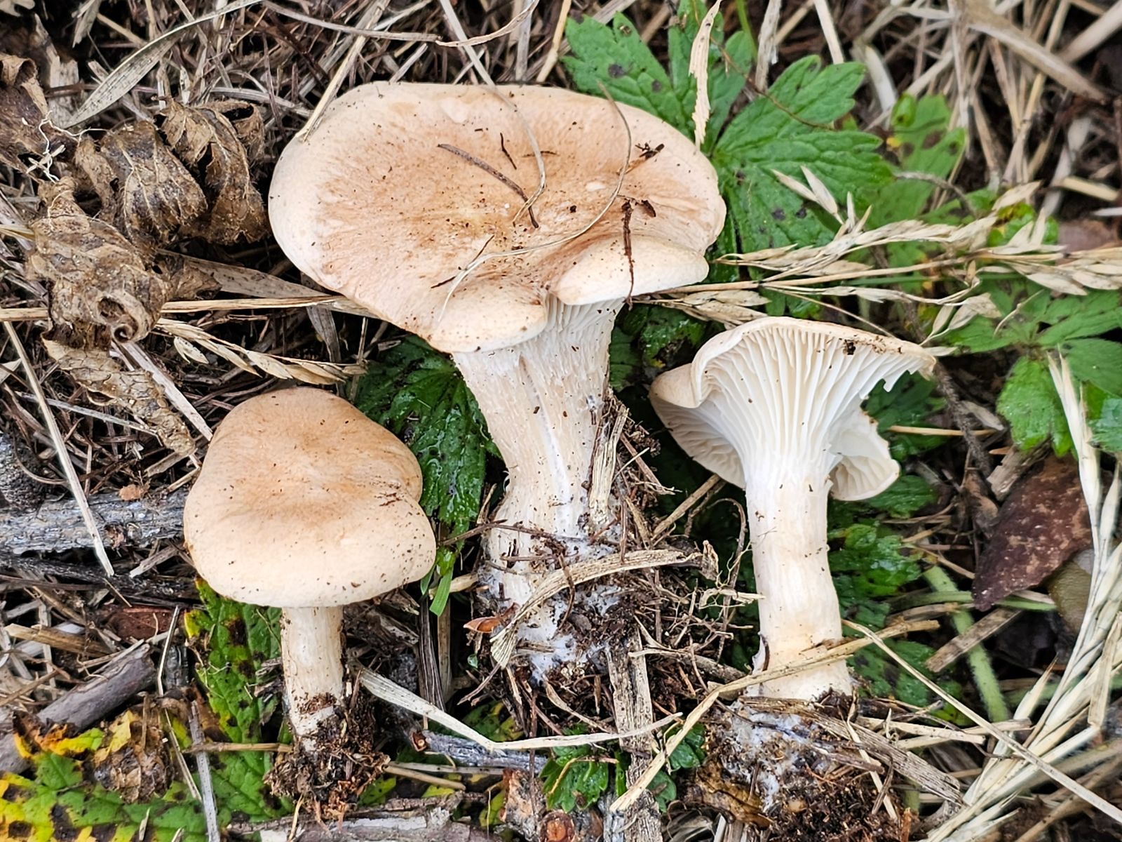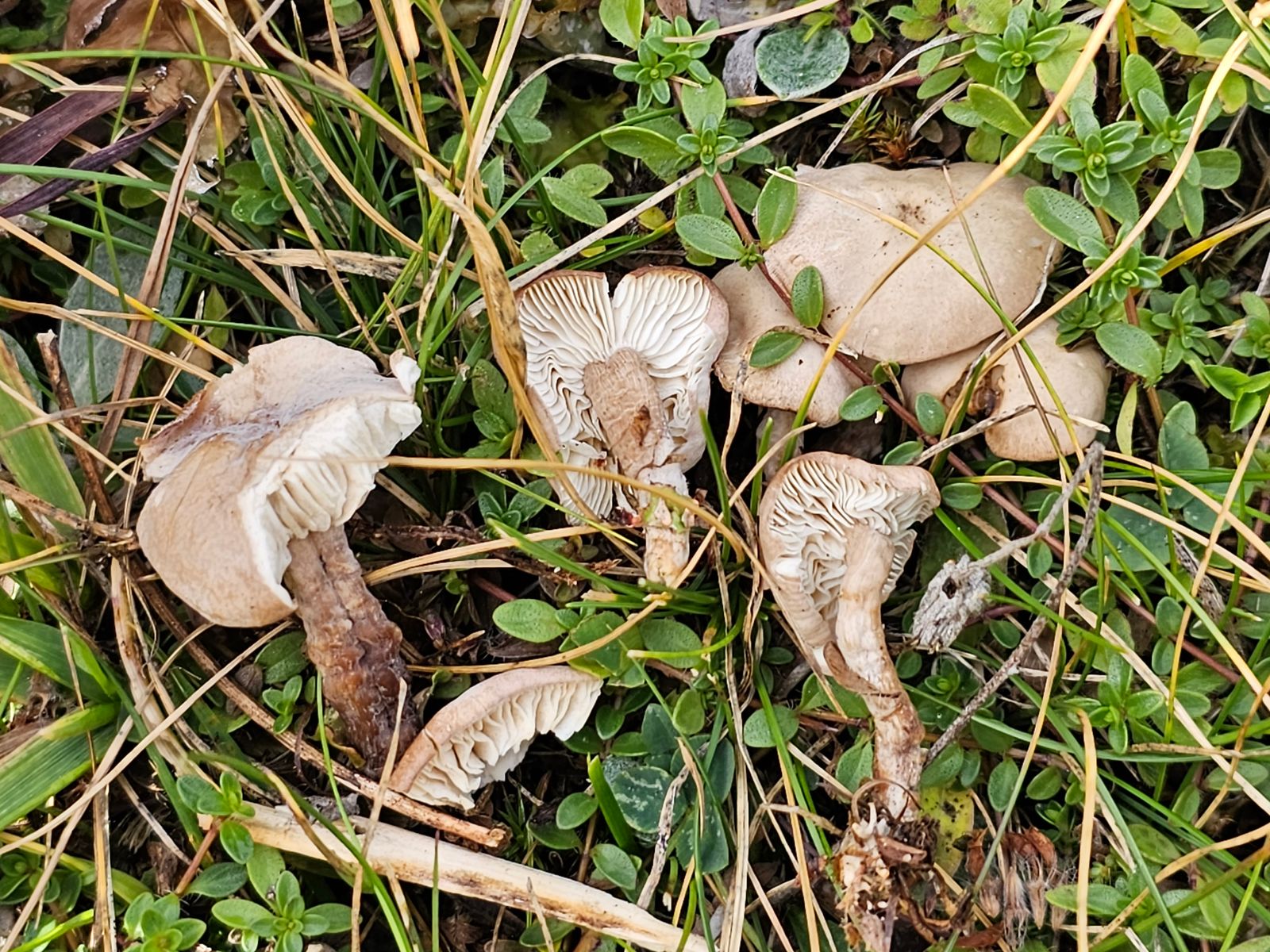 Kleine, hygrophane Trichterlinge sind der Horror. Mit dieser bräunlichen Hutmitte und dem pilzig-anisartigen Geruch komme ich auf Clitocybe lariciola.