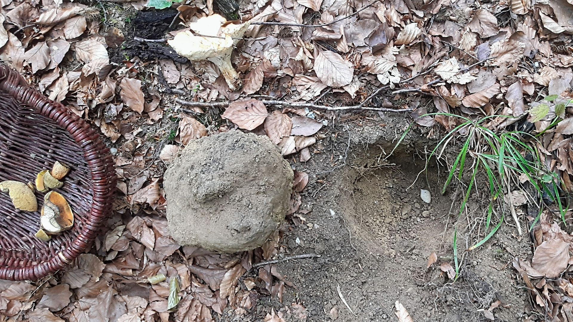 Nicht wegen dem schon mindestens fragwürdigem Fruchtkörper. Eher, um zu prüfen, ob Totholz vergraben ist, oder sich doch das deutlich seltenere vor mir befindet.
