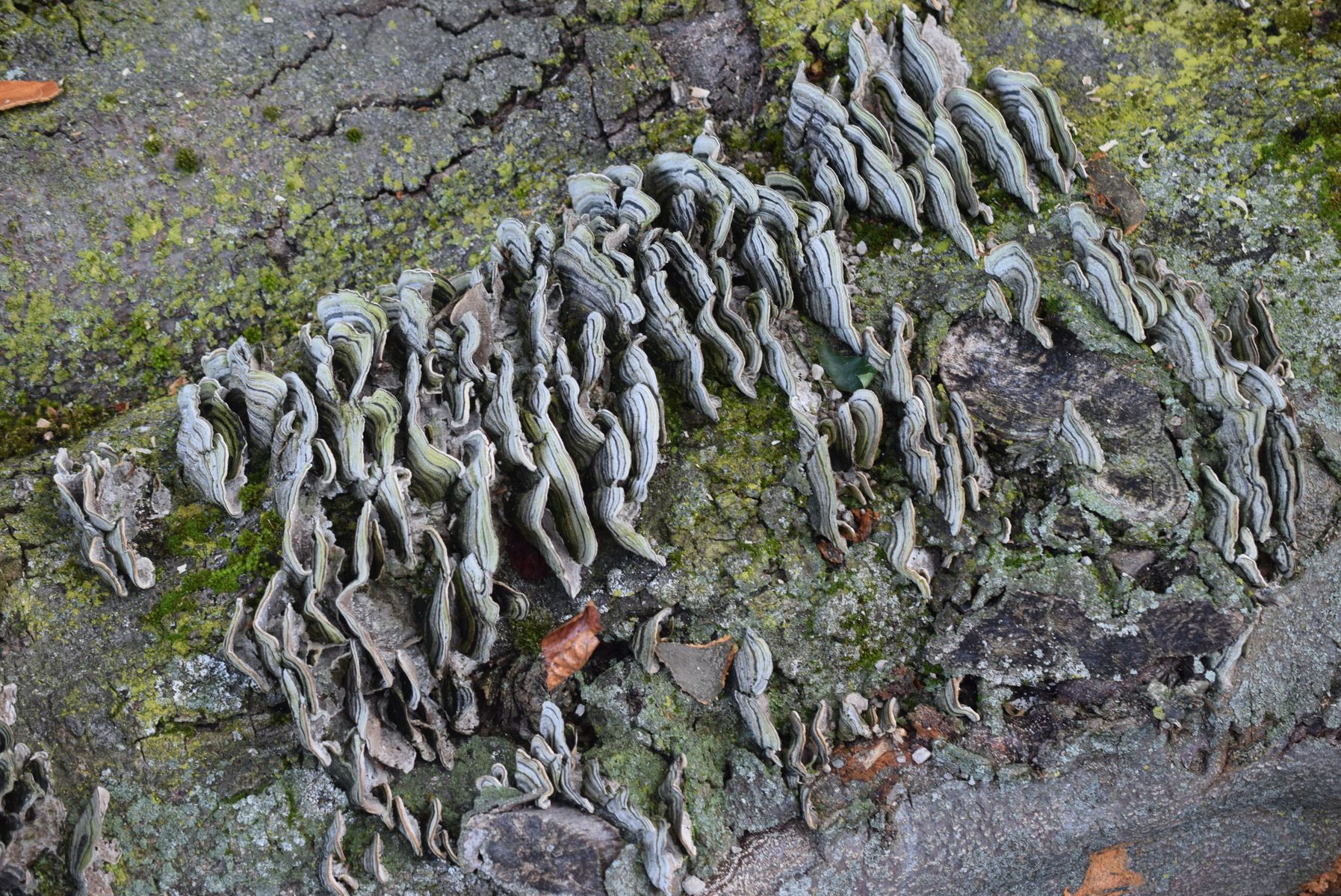 ab und zu Pilze . Ein schönes Fund von Hericium cirrhatum , auf liegende tote Buche 2 Exemplaren nebenein