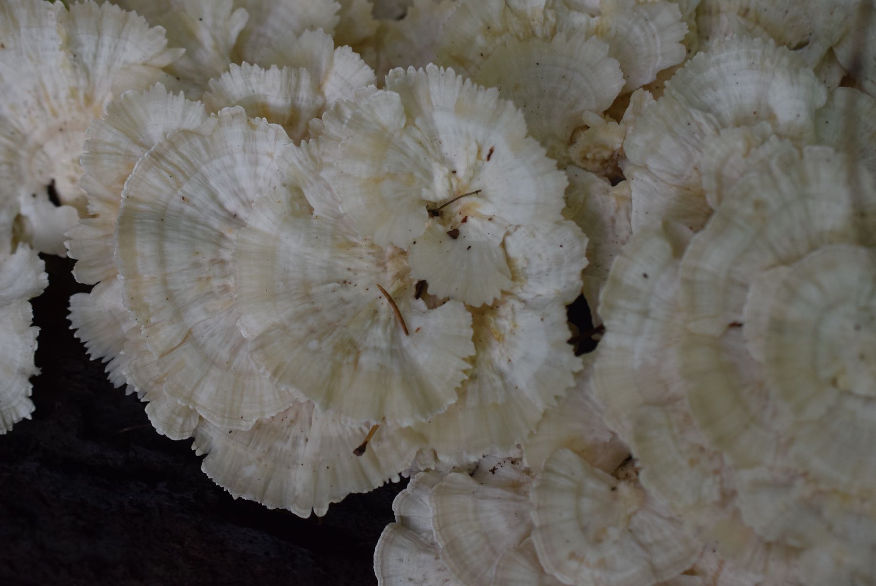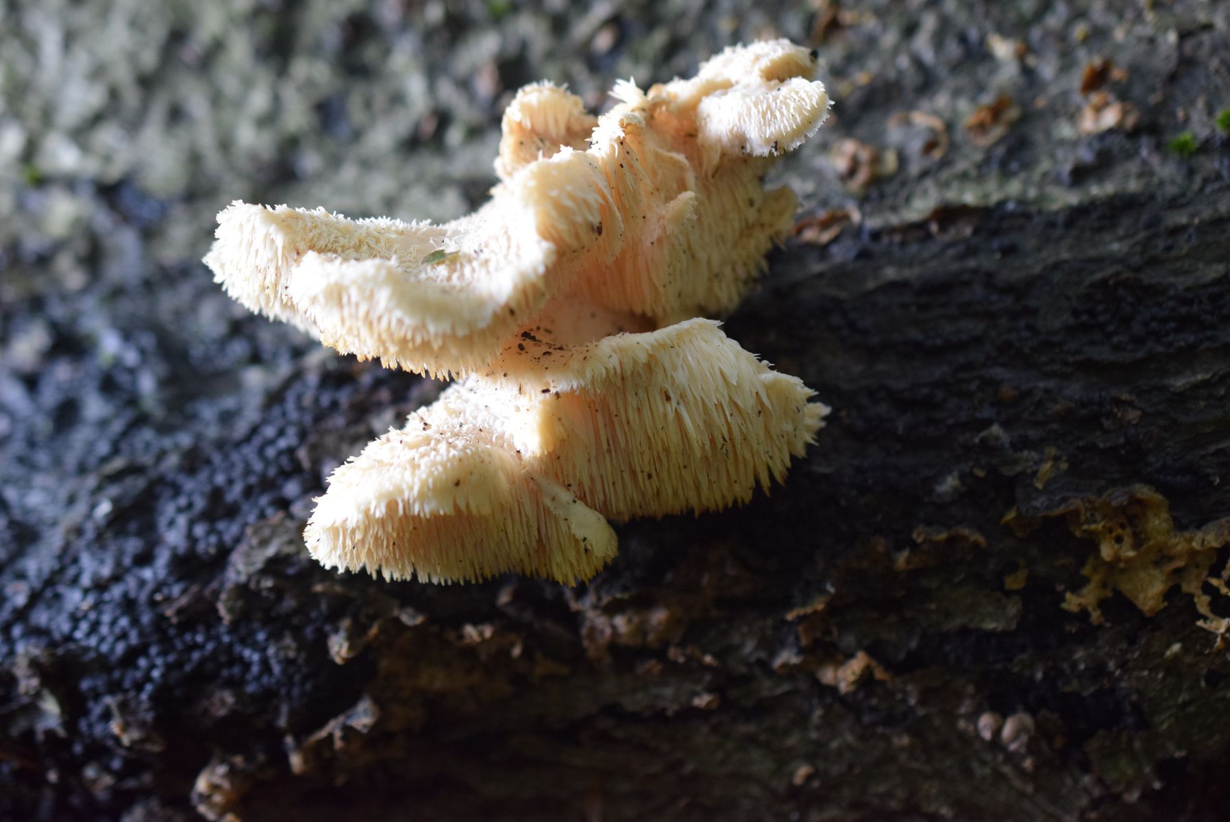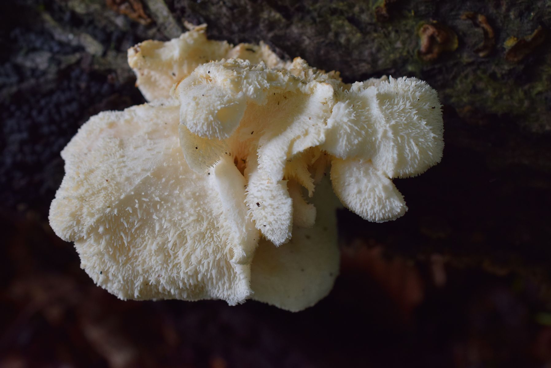 ab und zu Pilze . Ein schönes Fund von Hericium cirrhatum , auf liegende tote Buche 2 Exemplaren nebenein