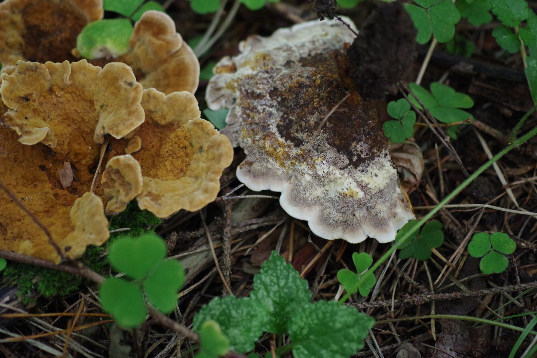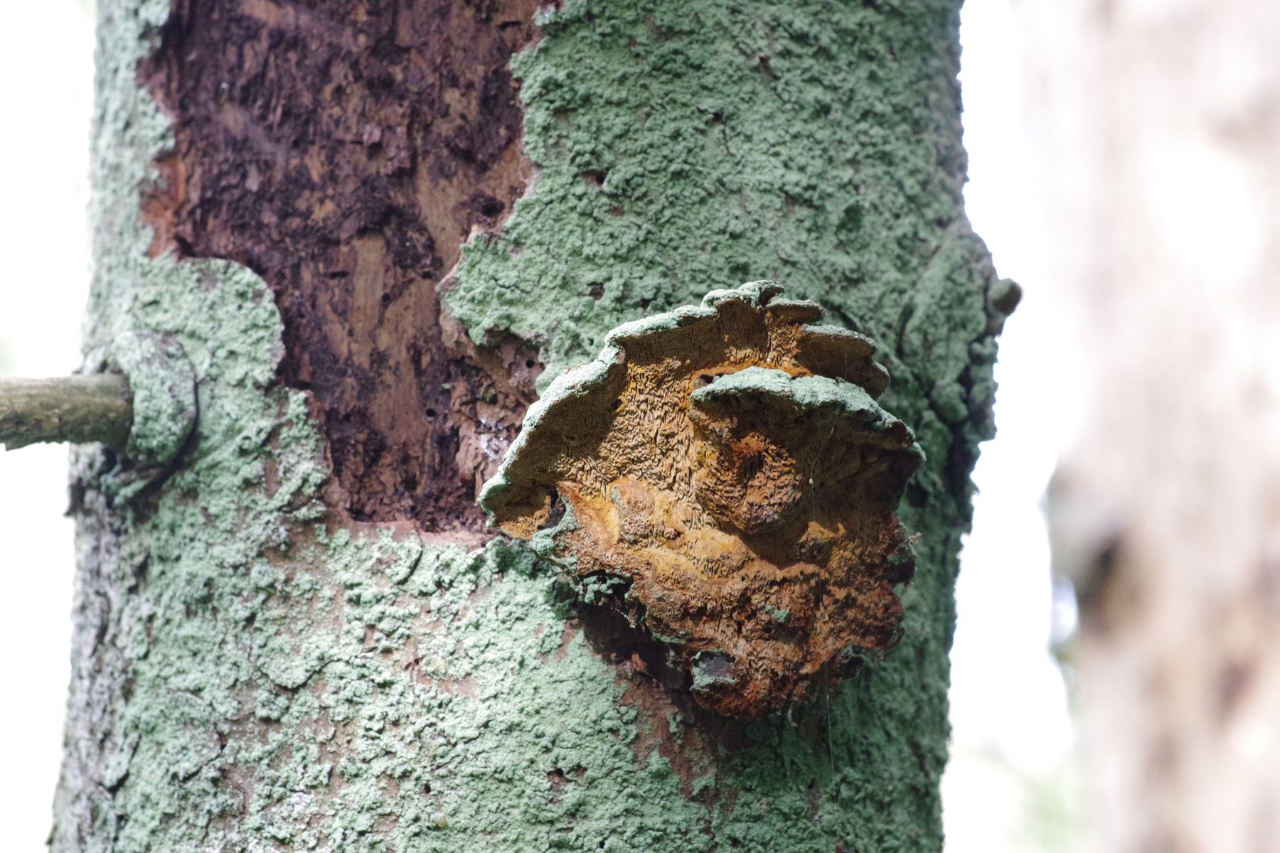 2) Phellinus chrysoloma, davon ist die ganze, abgebrochene Fichte voll und wird es wohl noch ein paar Jahre sein