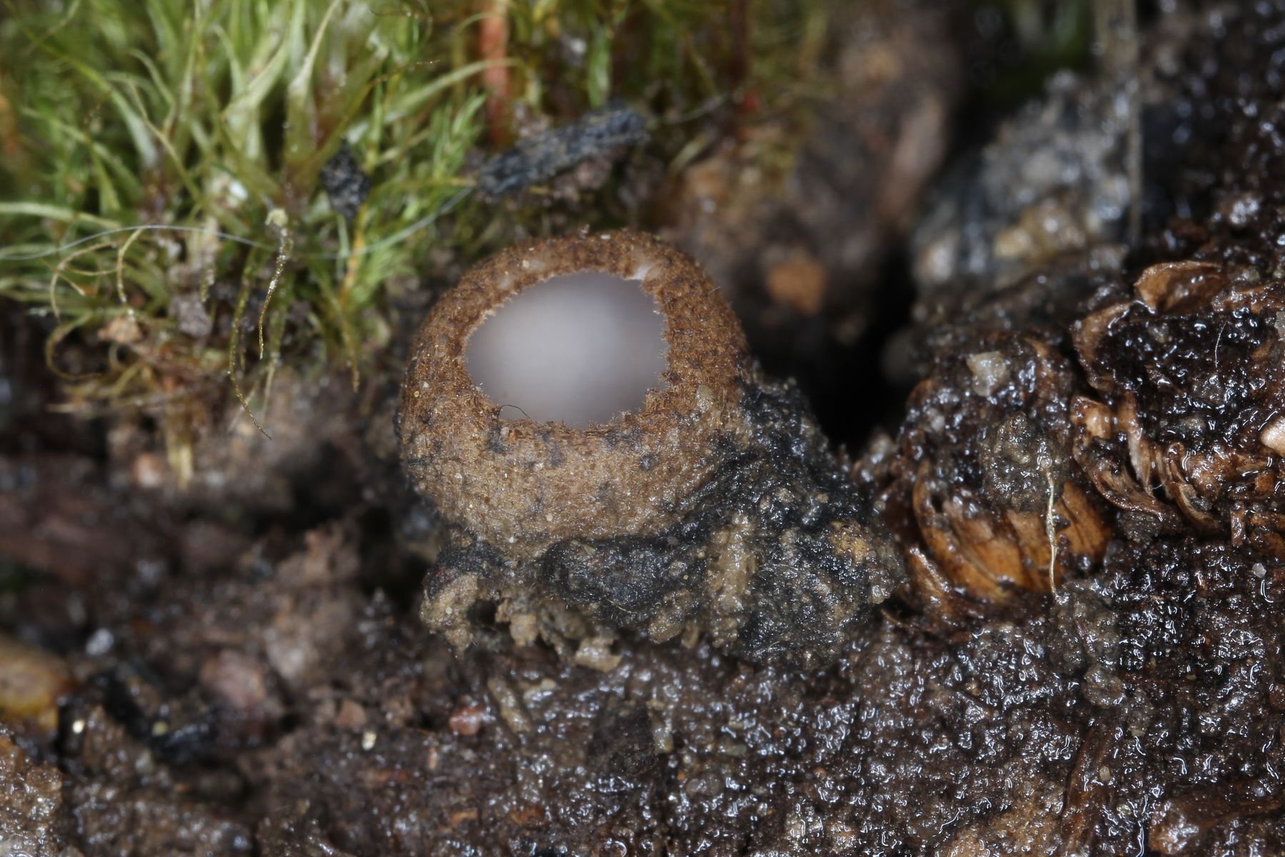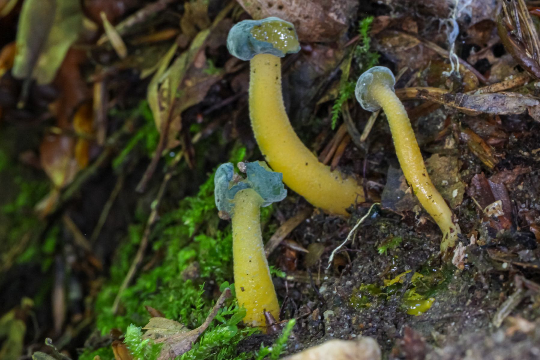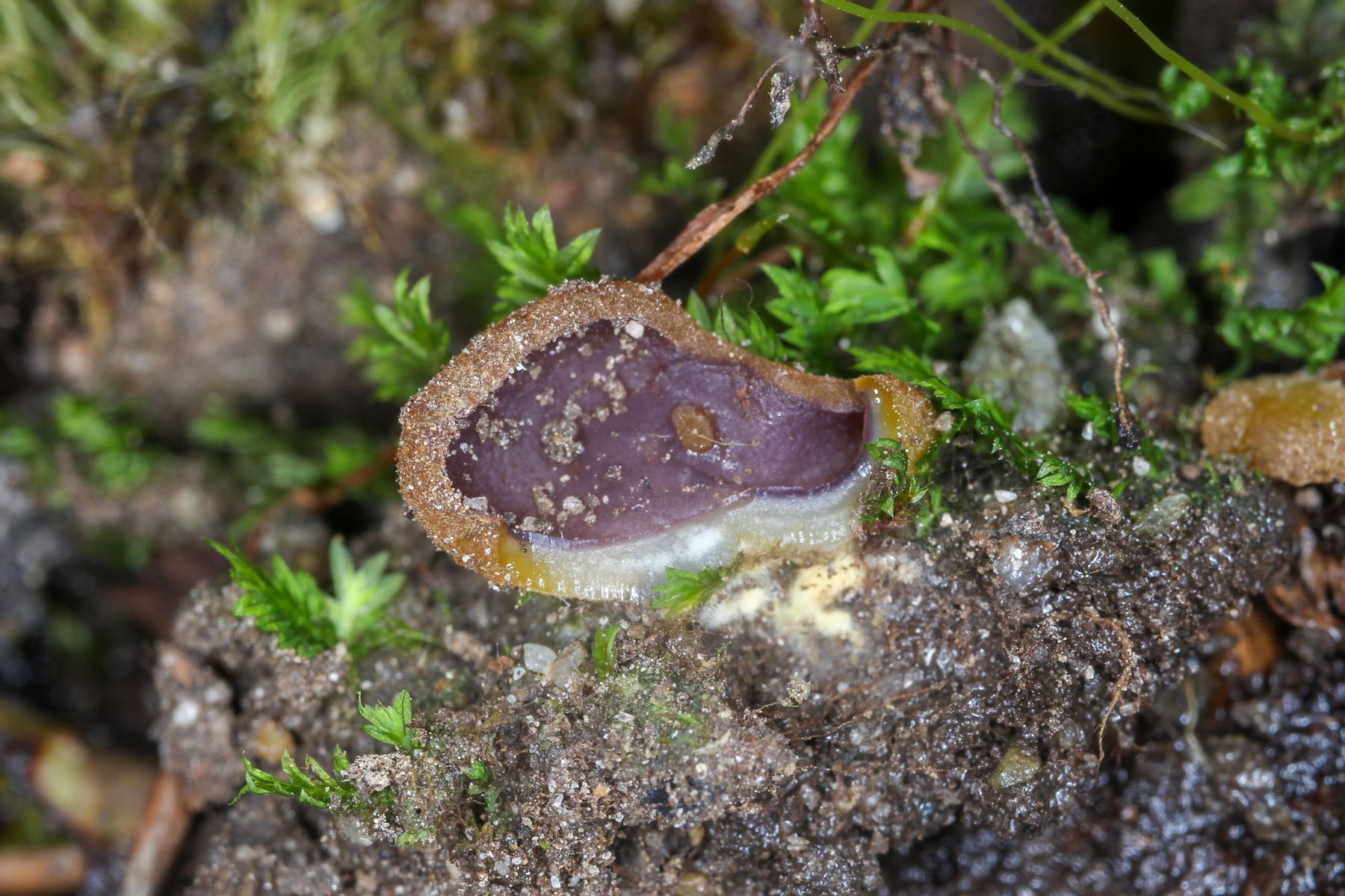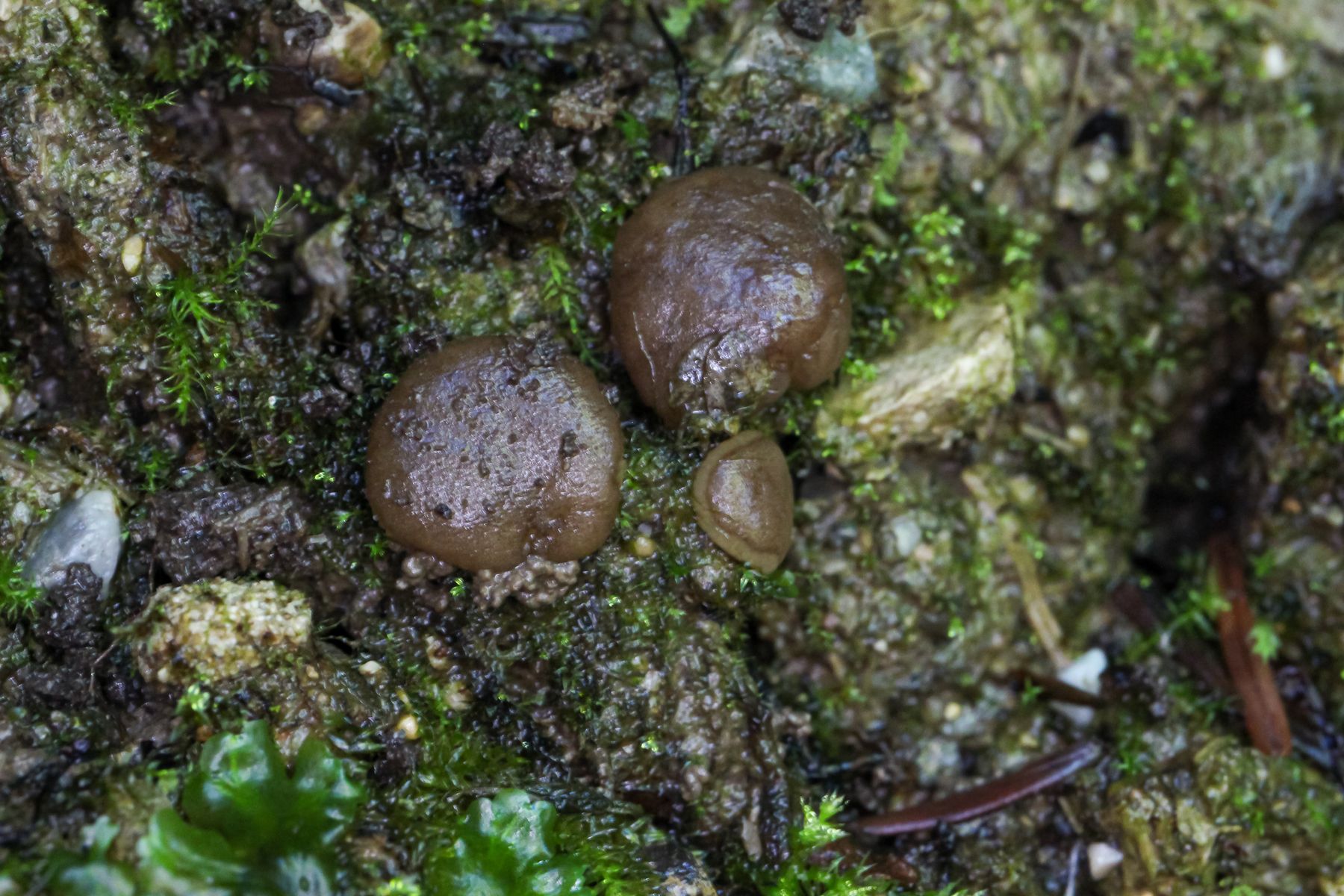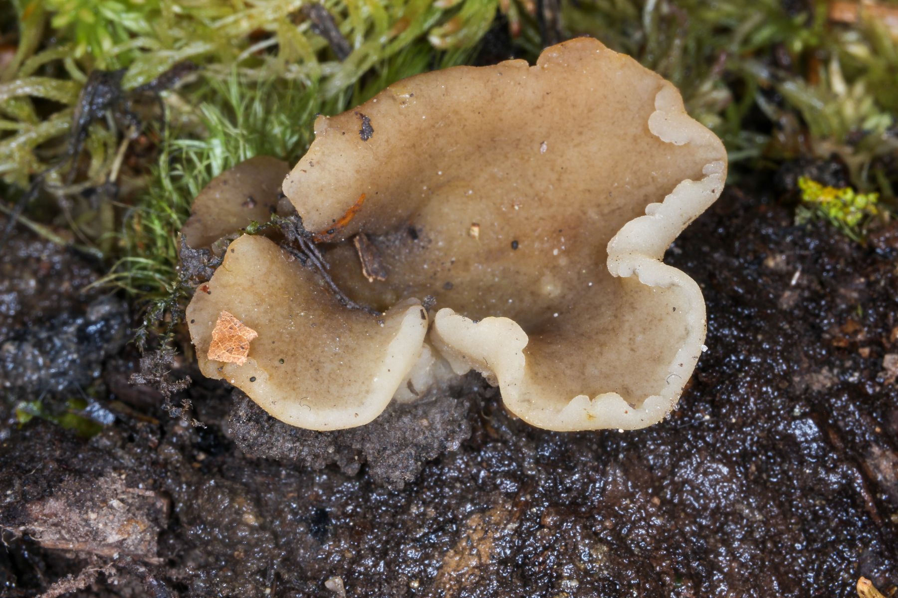 1) Leotia lubrica mit Befall