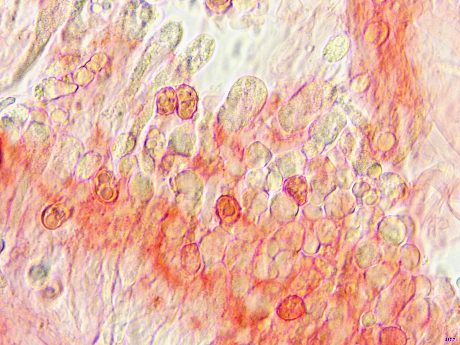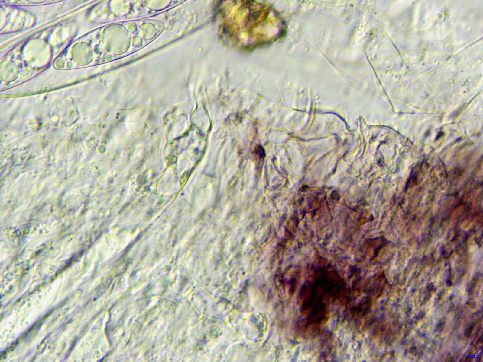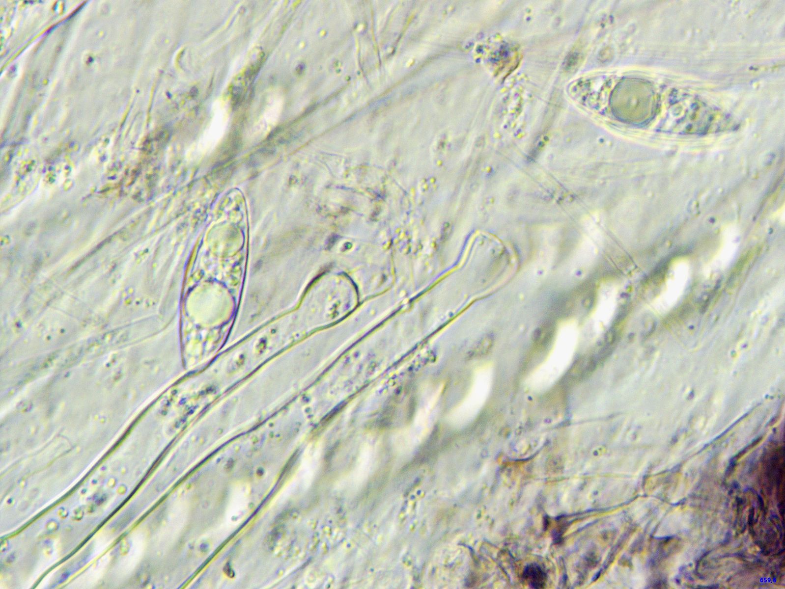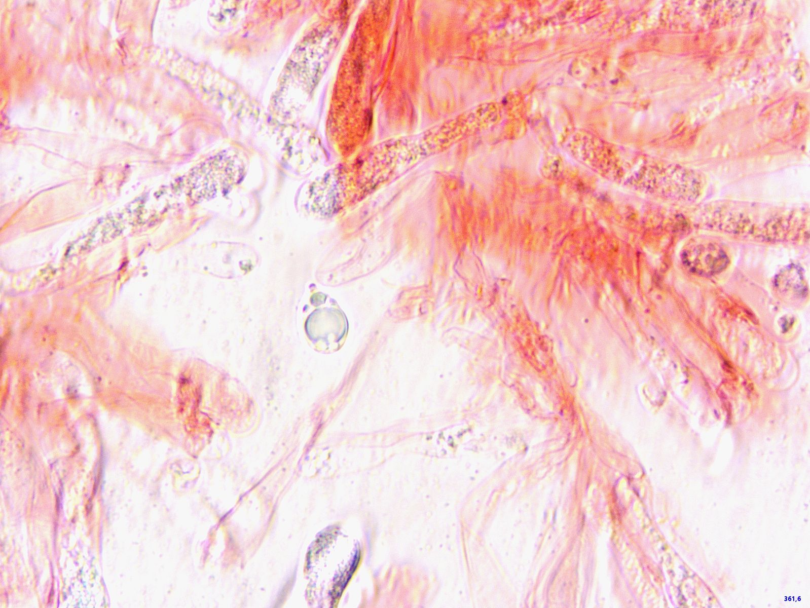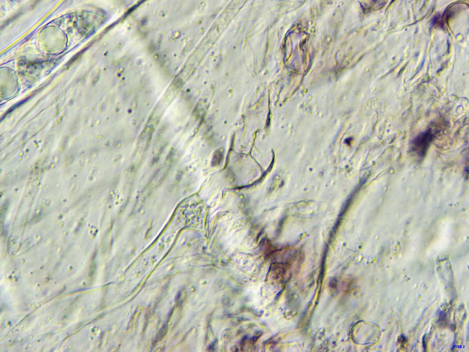 Das Präparat wirkte gelatinös, keine Basidien oder Sporen zu finden.