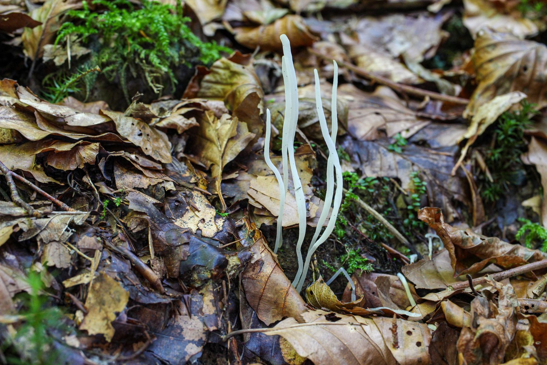 10) An einem kleinen Rinnsal mit Ahorn, Clavaria falcata.