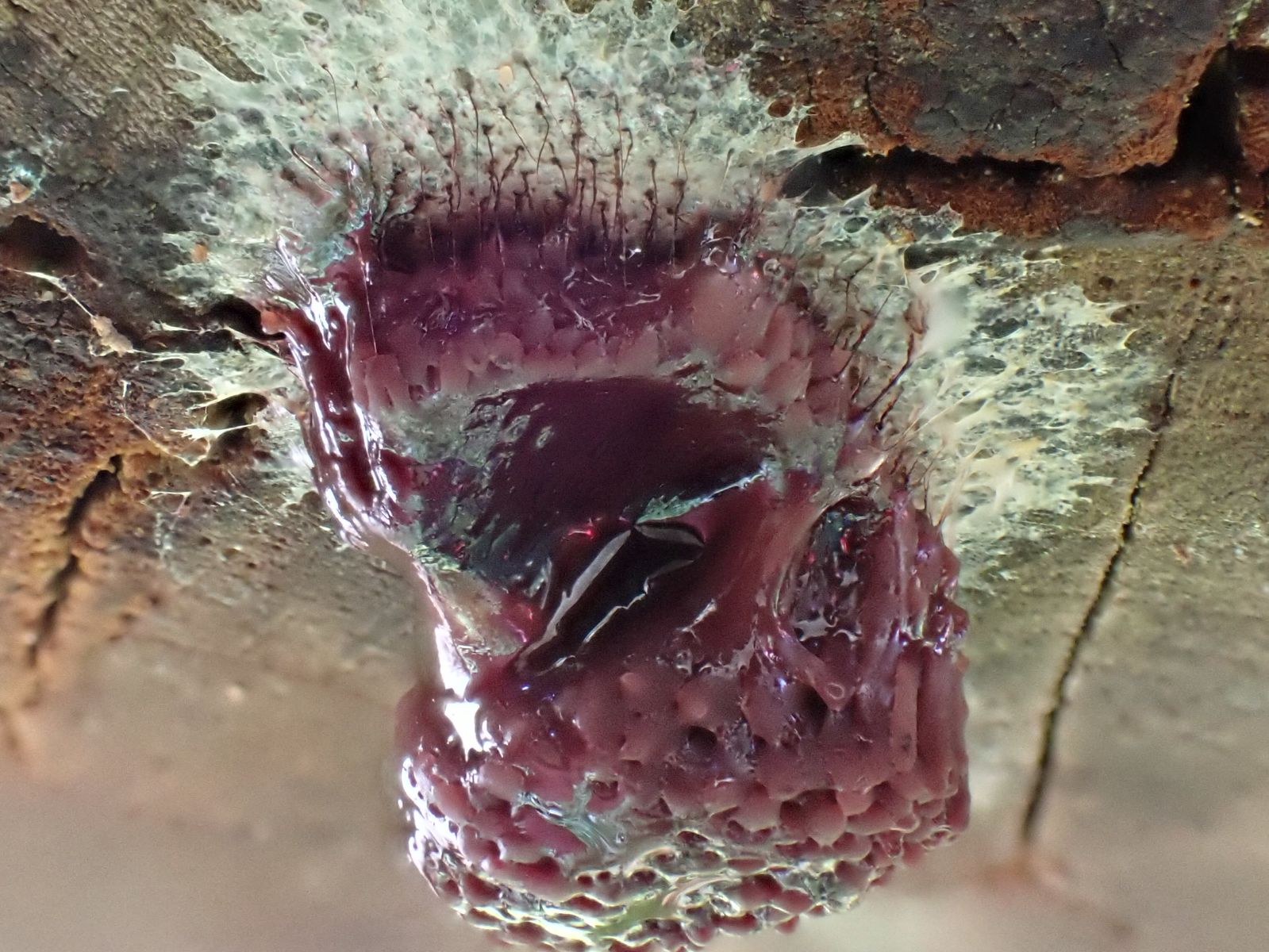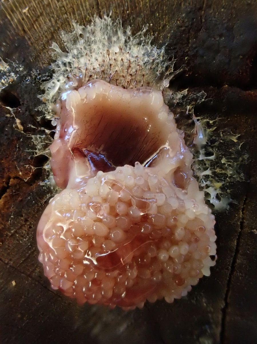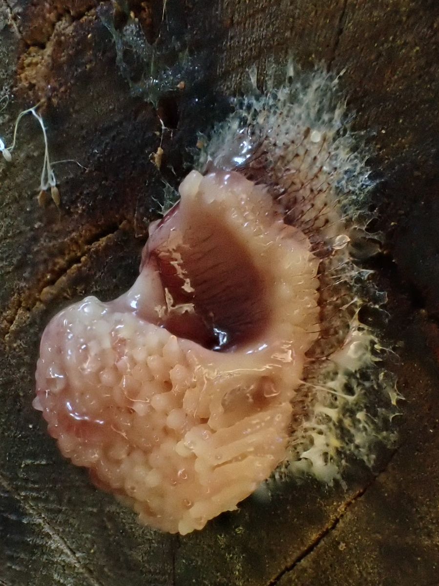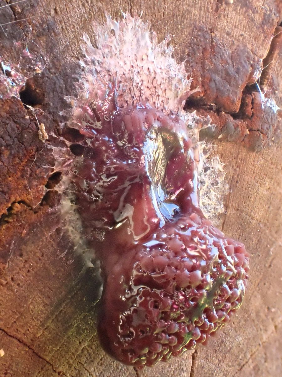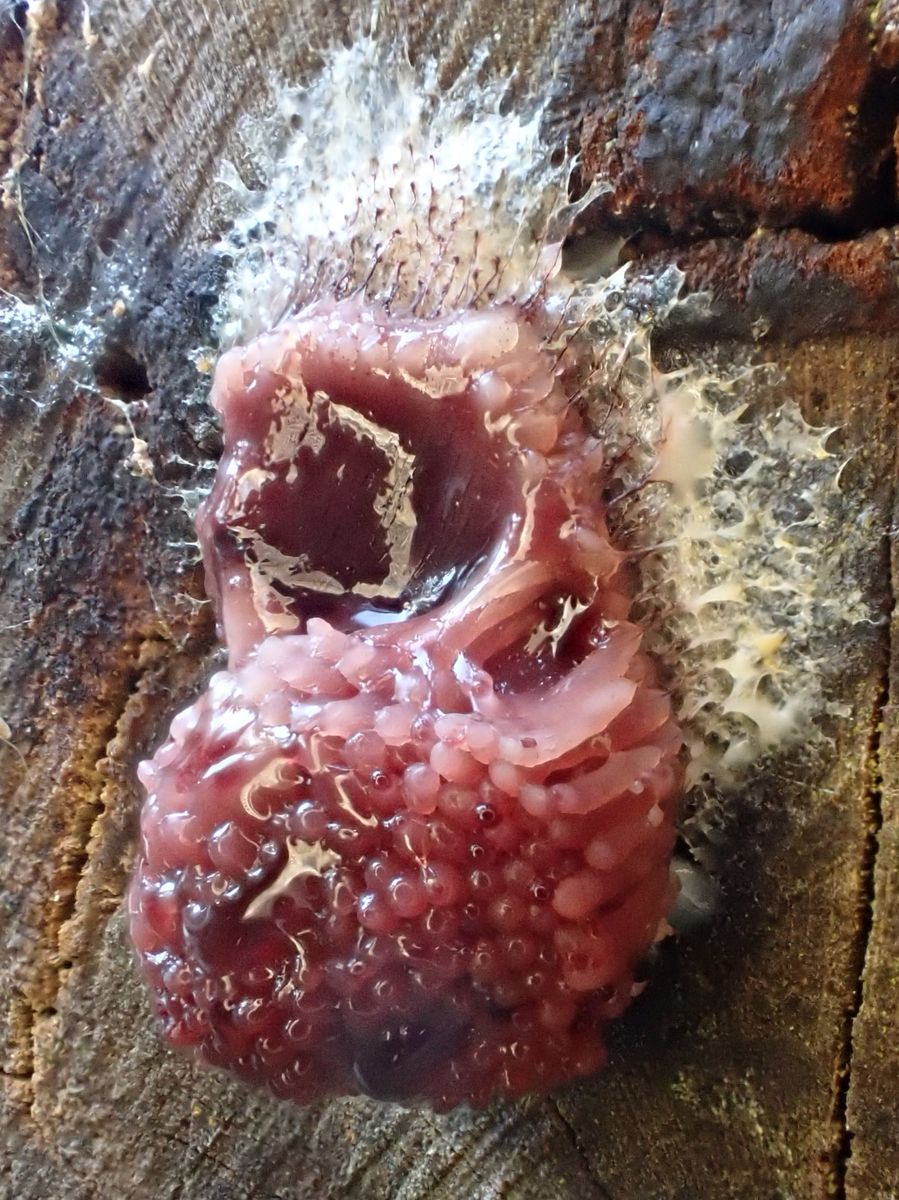 Also sofort wieder raus, bessere Bilder machen. Der Schleimer hatte sich schon verändert, also hab´ ich ungefähr jede Stunde Fotos gemacht.