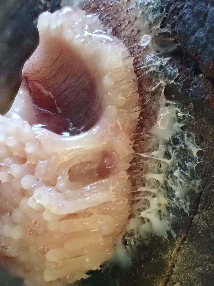 Also sofort wieder raus, bessere Bilder machen. Der Schleimer hatte sich schon verändert, also hab´ ich ungefähr jede Stunde Fotos gemacht.