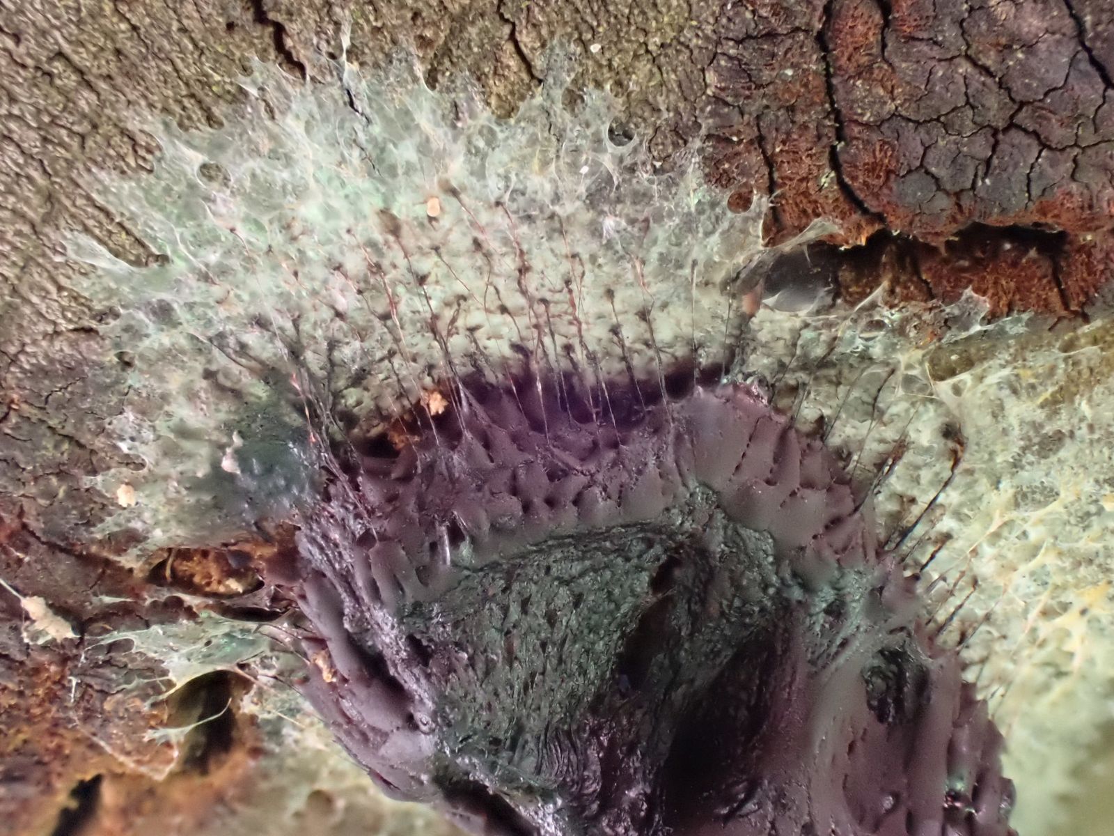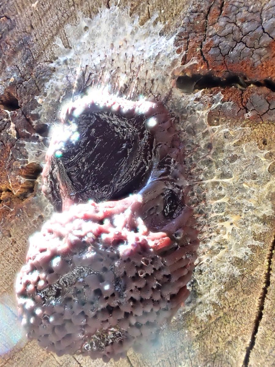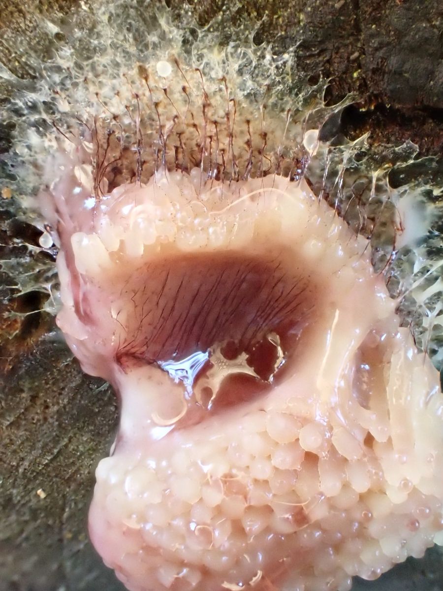 Also sofort wieder raus, bessere Bilder machen. Der Schleimer hatte sich schon verändert, also hab´ ich ungefähr jede Stunde Fotos gemacht.