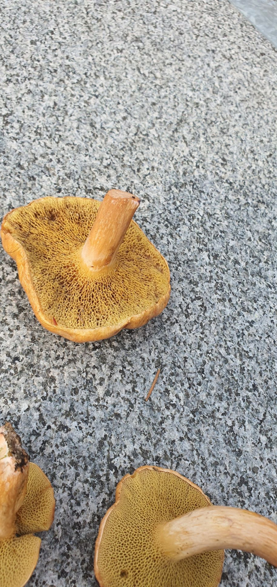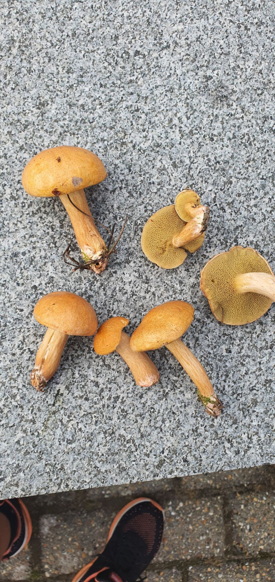 . Hier in unserem Ulaubsdomizil an der Westküste Dänemarks gibt es in dem Wald hinter unserem Feriemhäuschen seit gestern eine Pilzschwemme mit hellbraunen Röhrlingen, die ich leider nicht bestimmen kann. Standort: überwiegend Nadelwald. Ich hab mal ein paar in verschiedenen Größen mitgenommen.