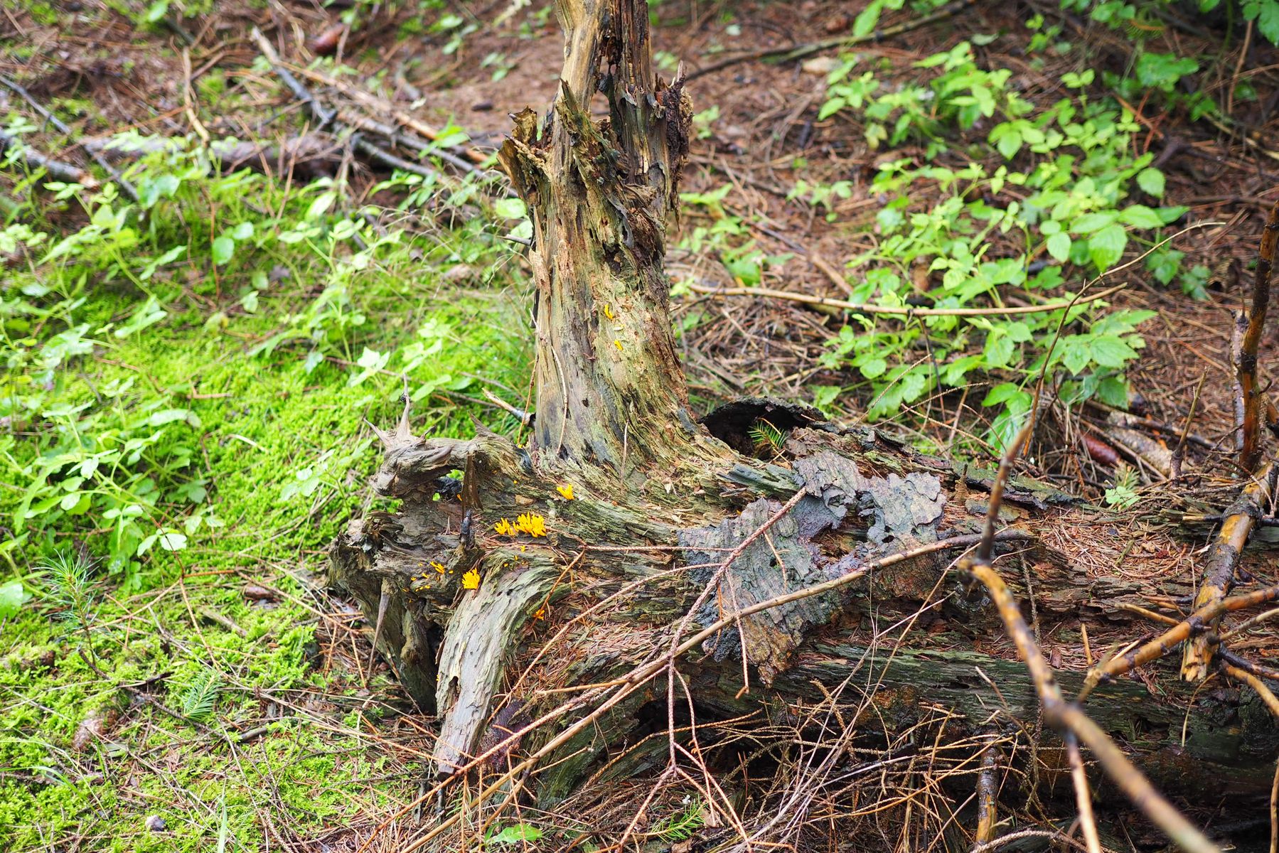 am 1. August habe ich im Fichtenwald am Wurzelauslauf einer liegenden Fichte kleine Pilze gefunden, die auch heute noch vorhanden sind.