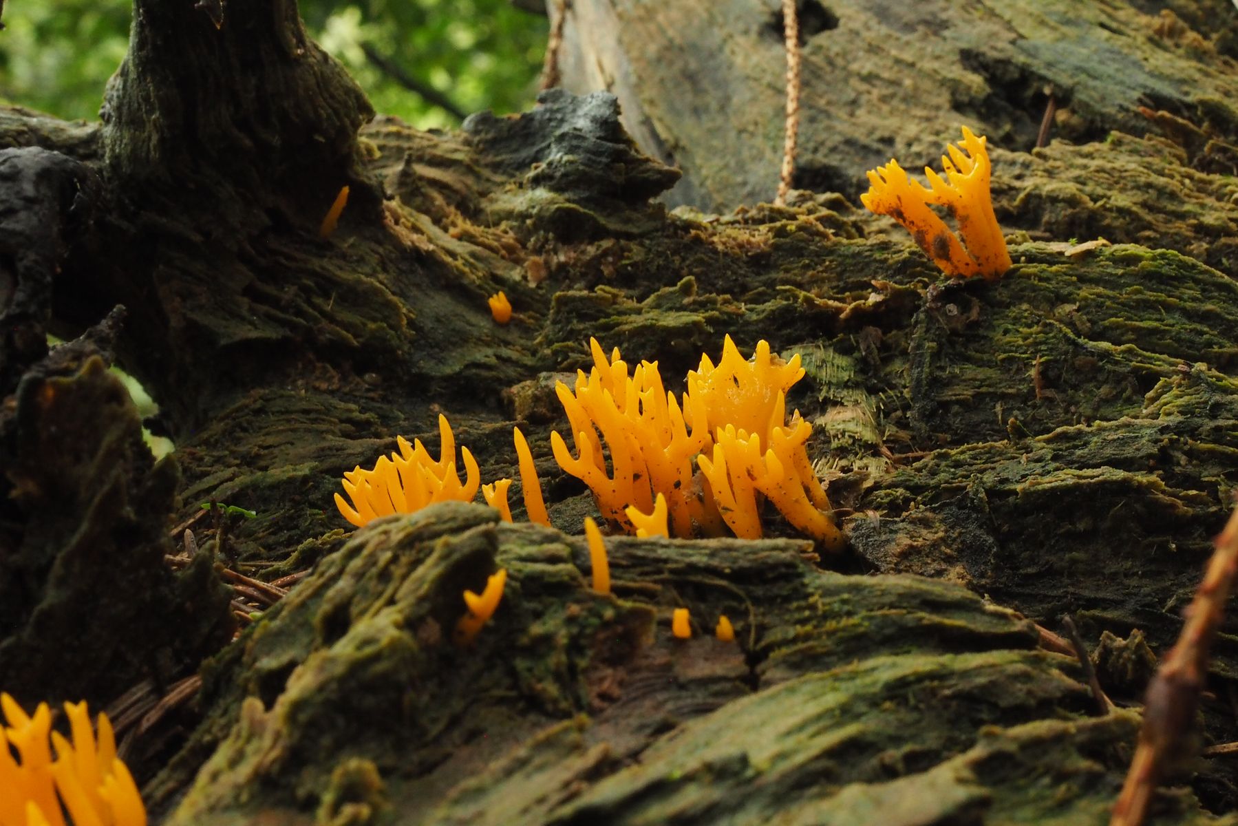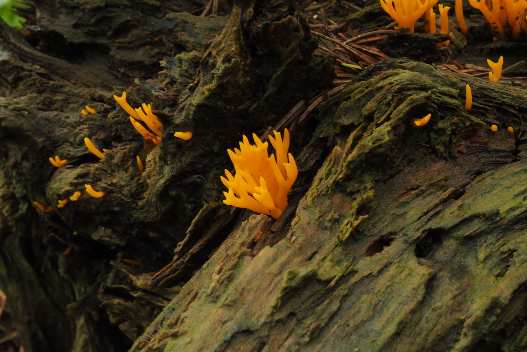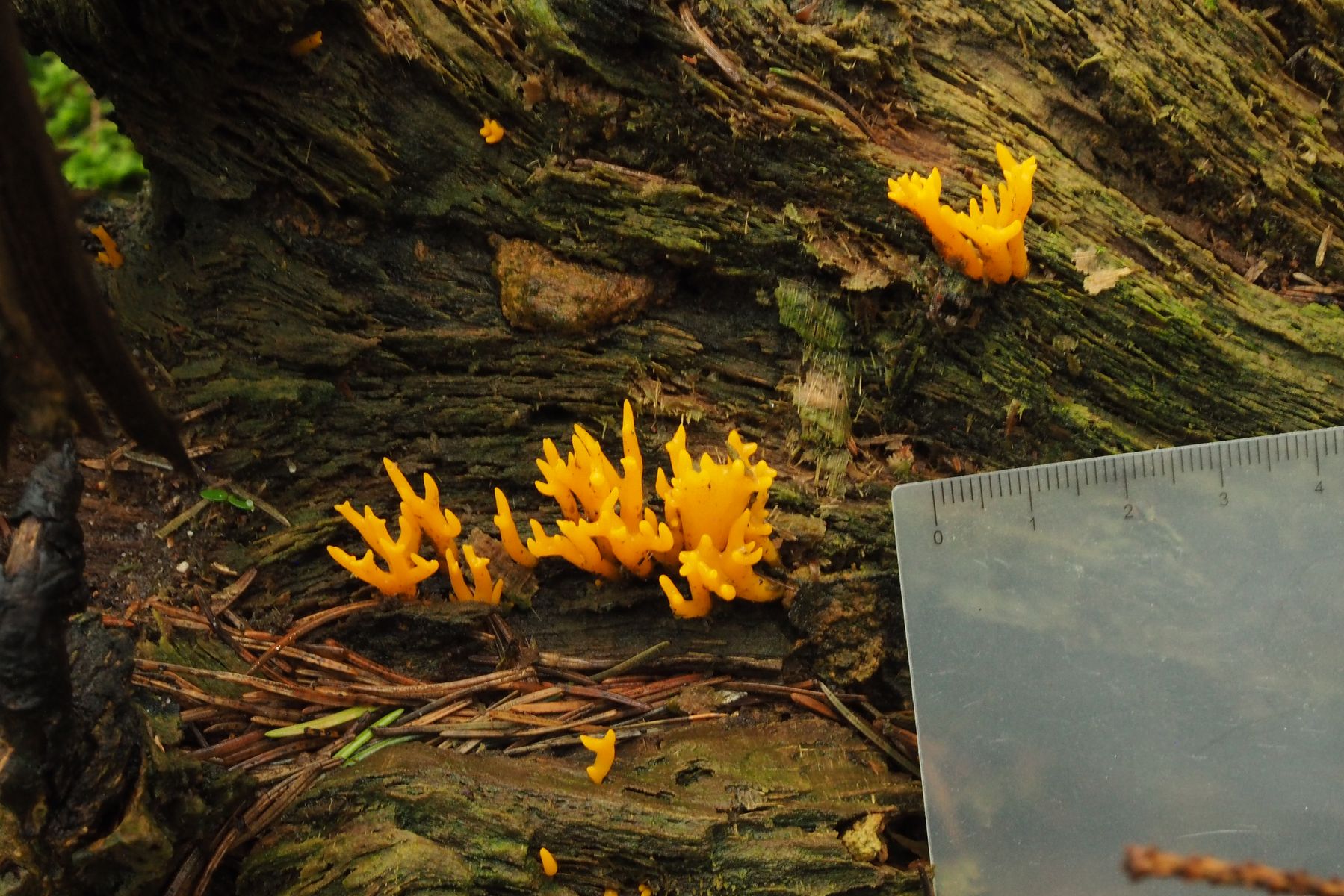 Ich halte die Pilze für Klebriger Hörnling - Calocera viscosa.
