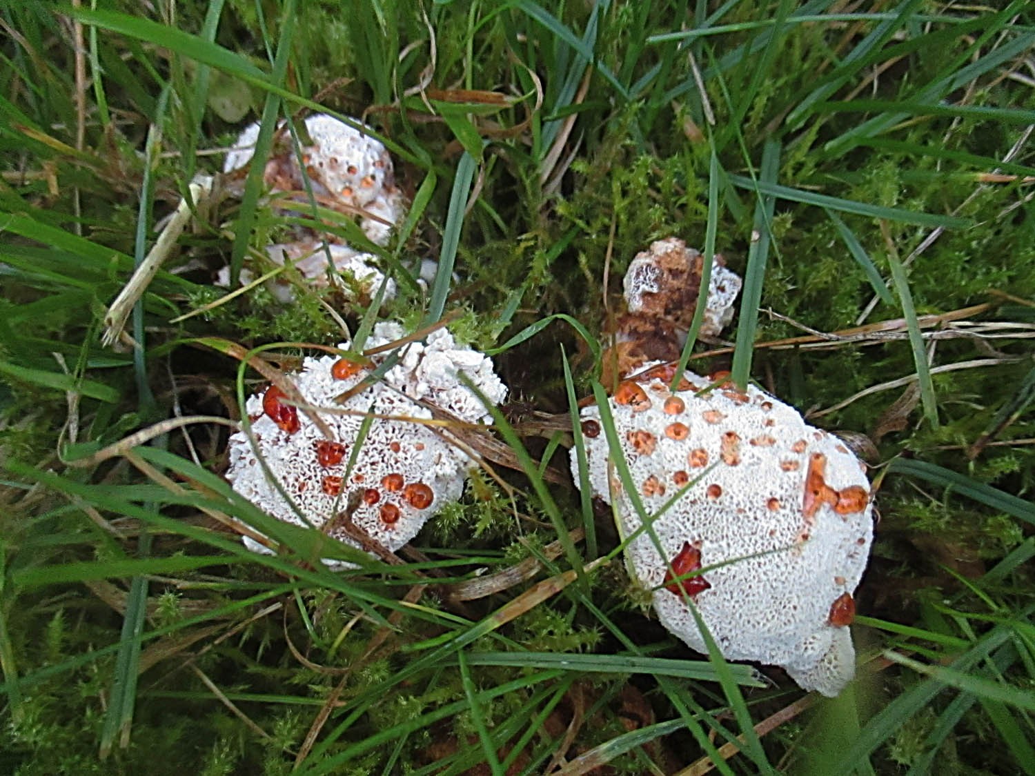 Abortiporus biennis, den Rötenden Saftwirrling