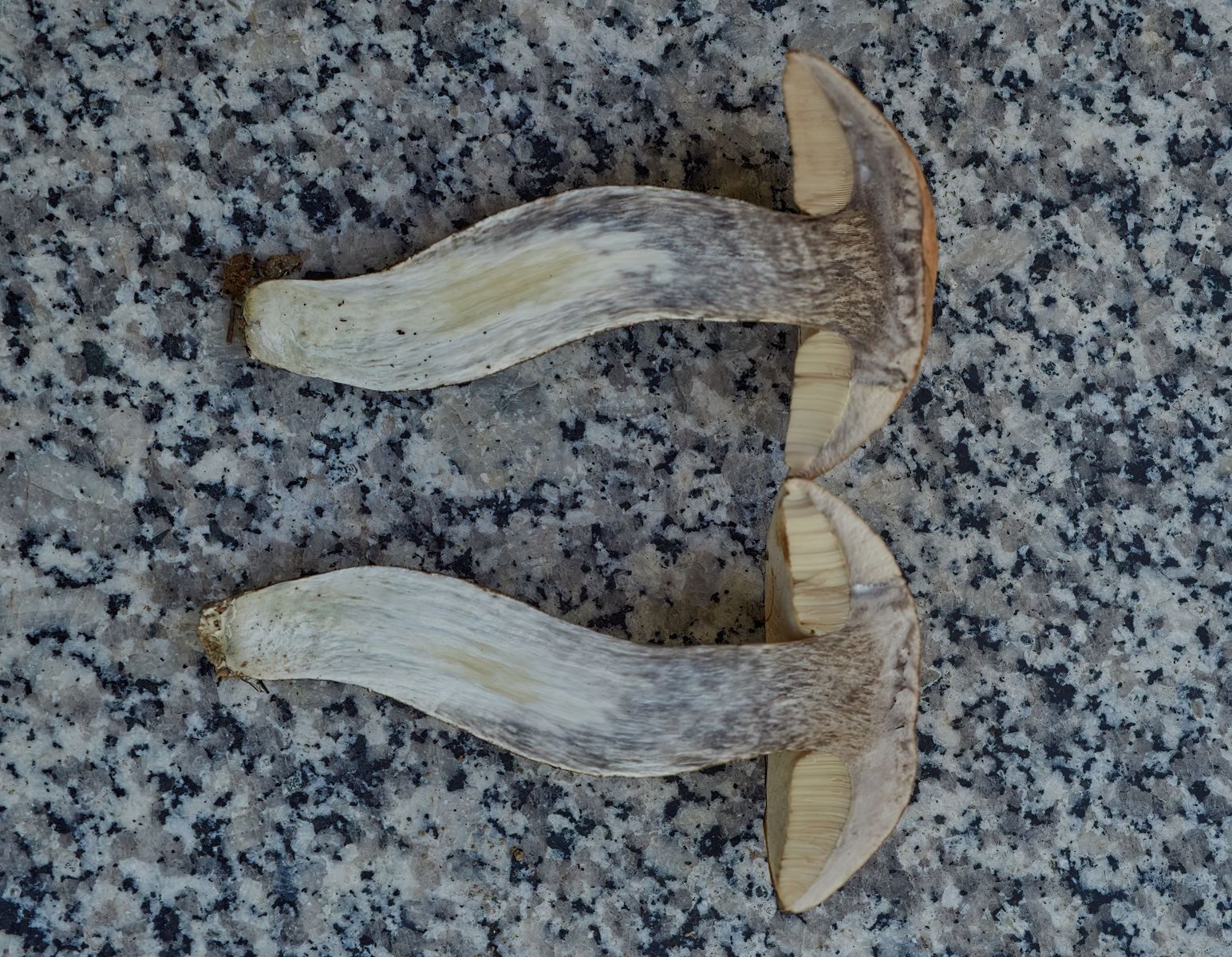 Ich kenne die Espenrotkappe von der Stielschuppenfärbung als ziemlich variabel. An dem Espen-Standort hatte ich vor 2 Wochen schon mal einen Schub von FK und die feinen Schüppchen hatten dort eine braune, bisweilen fast ins Schwarze reichende Farbe, aber waren weniger deckend als beim Birkenpilz oder den Pappelraufüßen. Ein junges Exemplar hatte ich an der Stielbasis angeschnitten; dieses lief in kurzer Zeit tief dunkelblau an.