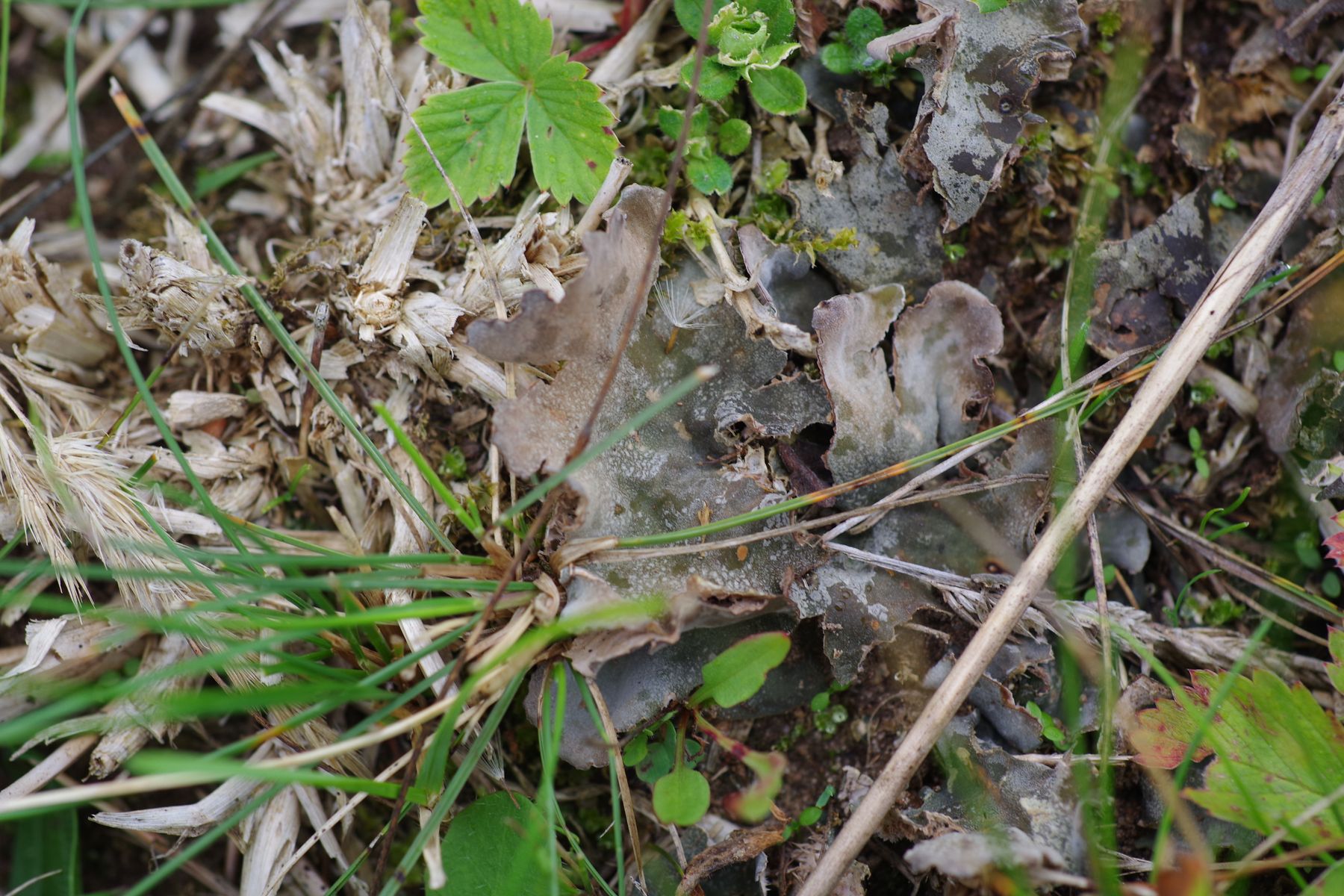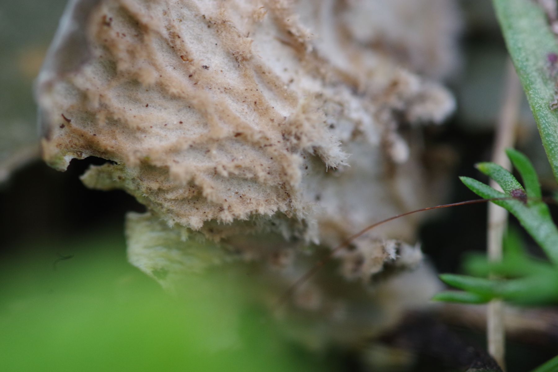 auf der Weide bin ich heute über eine kräftige Peltigera gestolpert, die sich deutlich von den üblichen P. ponojensis und gelegentlich P. rufescens unterscheidet (diese beiden Arten sind mitunter schwer auseinanderzuhalten), noch ohne Apothecien, aber extrem ausgeprägte wuschelige Rhizinen, so dass ich mir mit der Art ziemlich sicher bin. Ist auf Sand/Kies in voller Sonne. Das ist dann die vierte Art auf'm Hof (100 m Umkreis). Jedenfalls solange P. didactyla sich noch auf Ameisenhügeln hält.