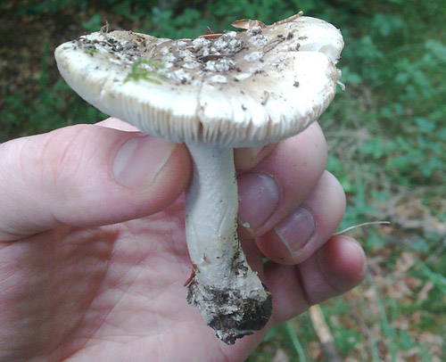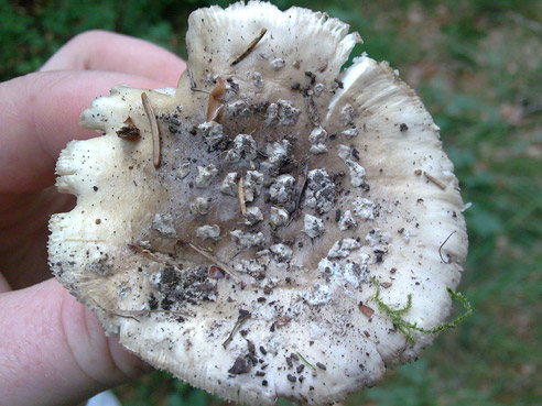 ---> Ich lege mich da (zusätzliche Detaiinfos fehlen) nicht fest und werfe "Grauen Wulstling" oder "Spitzschuppinen Wulstling" (wegen dert Velumreste auf dem Hut) in den Ring.