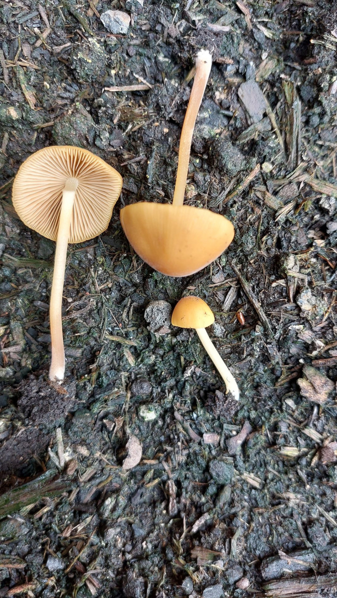 Die Pilze haben einen Hut von bis zu 3 cm Durchmesser, der Hut ist erst glockig, dann gewölbt; erst goldorange, dann hellbraun. Lamellen durchscheinend (gerieft).