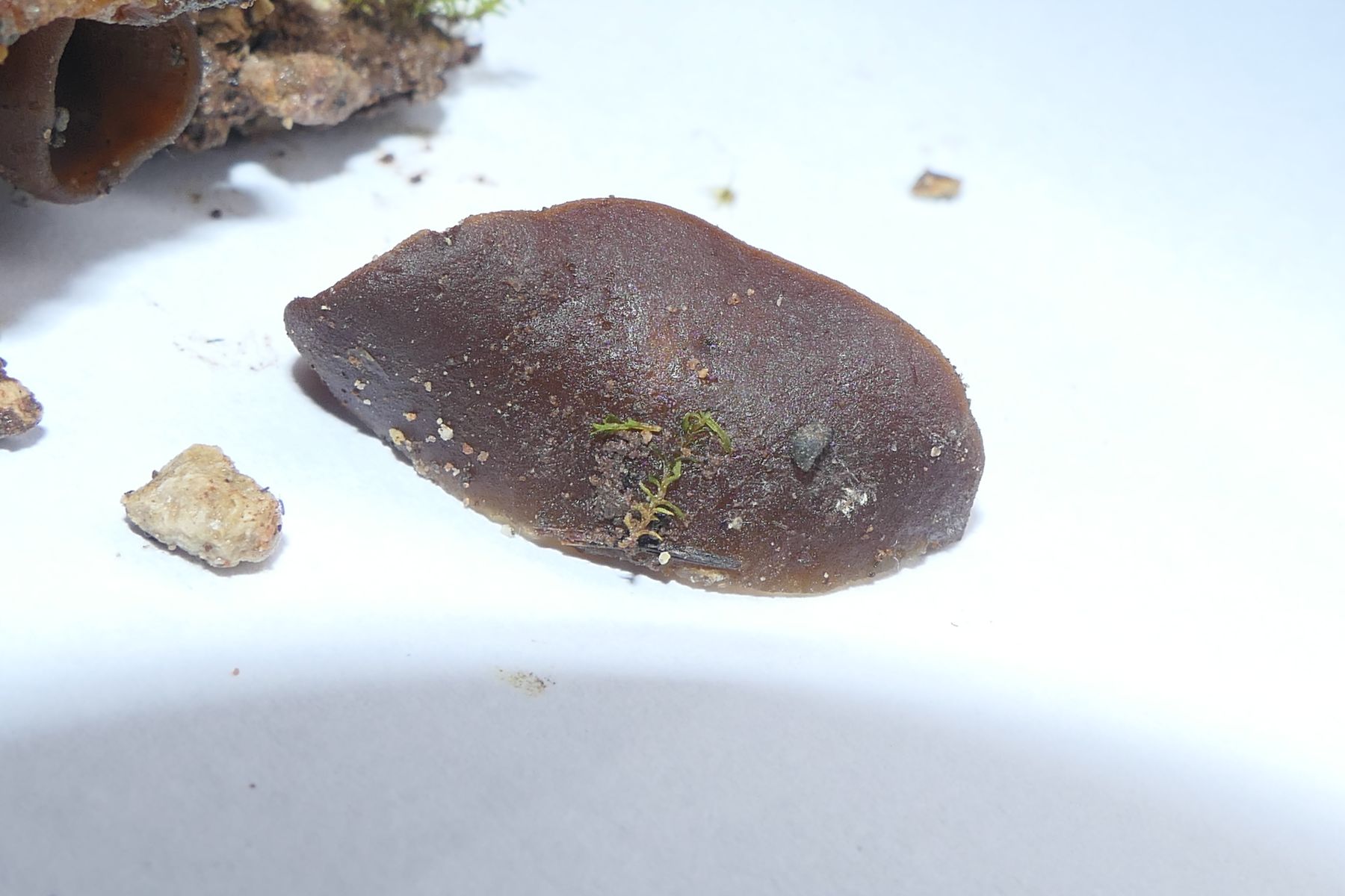 05 Paragalactinia michelii cf. - der gelbfleischige Lila-Braunparaphysenbecherling - mit großem Fragezeichen