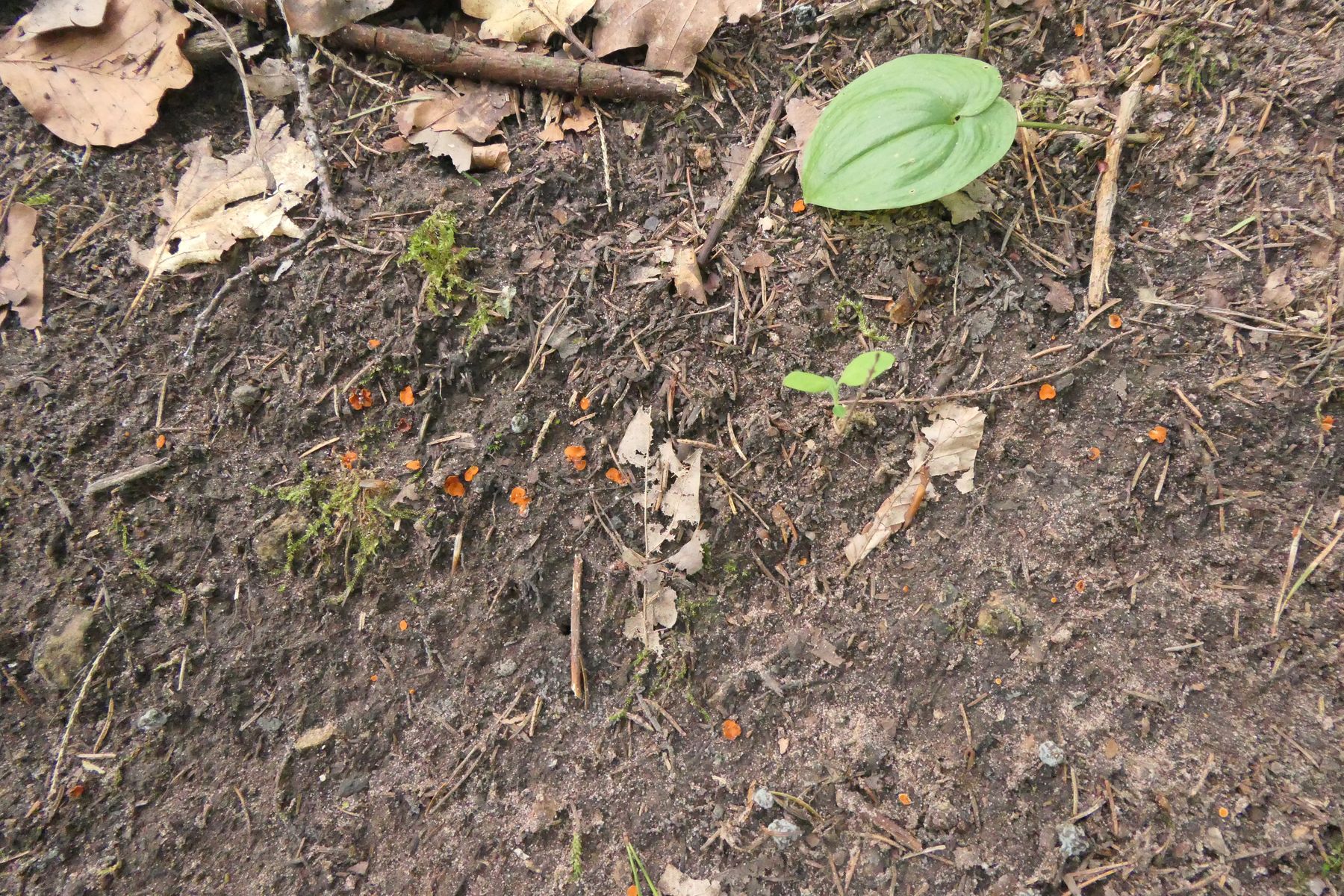 Dann kleine Rote Ascos am Wegesrand, die auf den ersten Blick an Schildborstlinge erinnerten, auf den zweiten dann nicht mehr, da keine Haare: