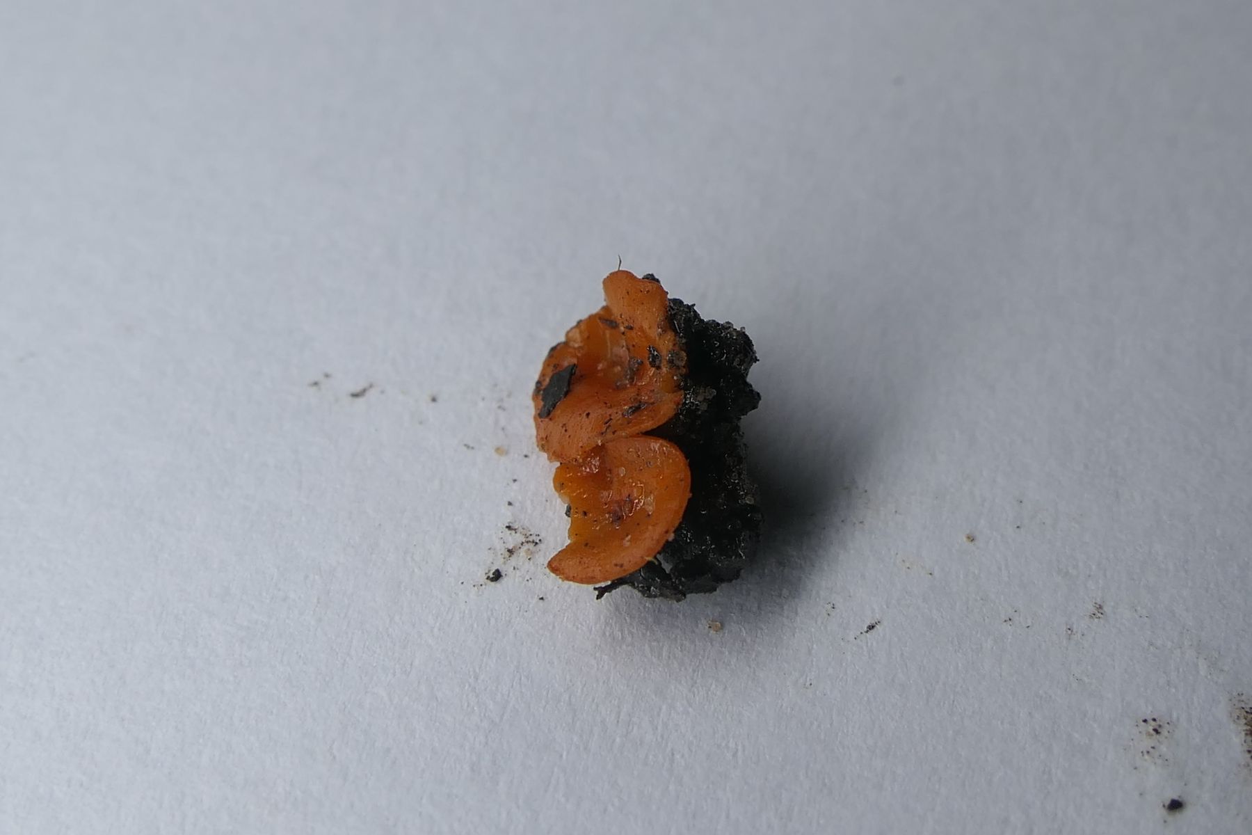 03 Pulvinulla convexella - der leuchtendrote Kissenbecherling, klein zahlreich und gesellig wachsend