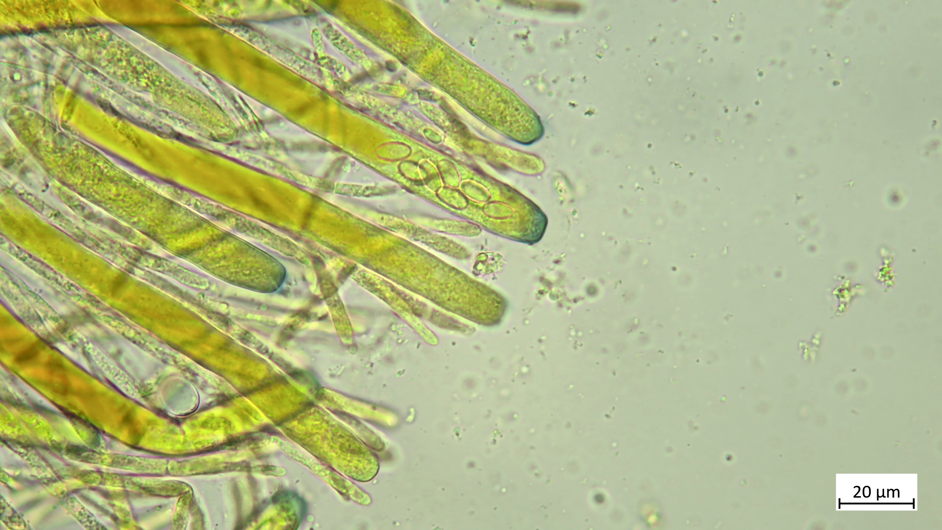 Hier gemeinsam mit den ellipsoiden Sporen der Humaria