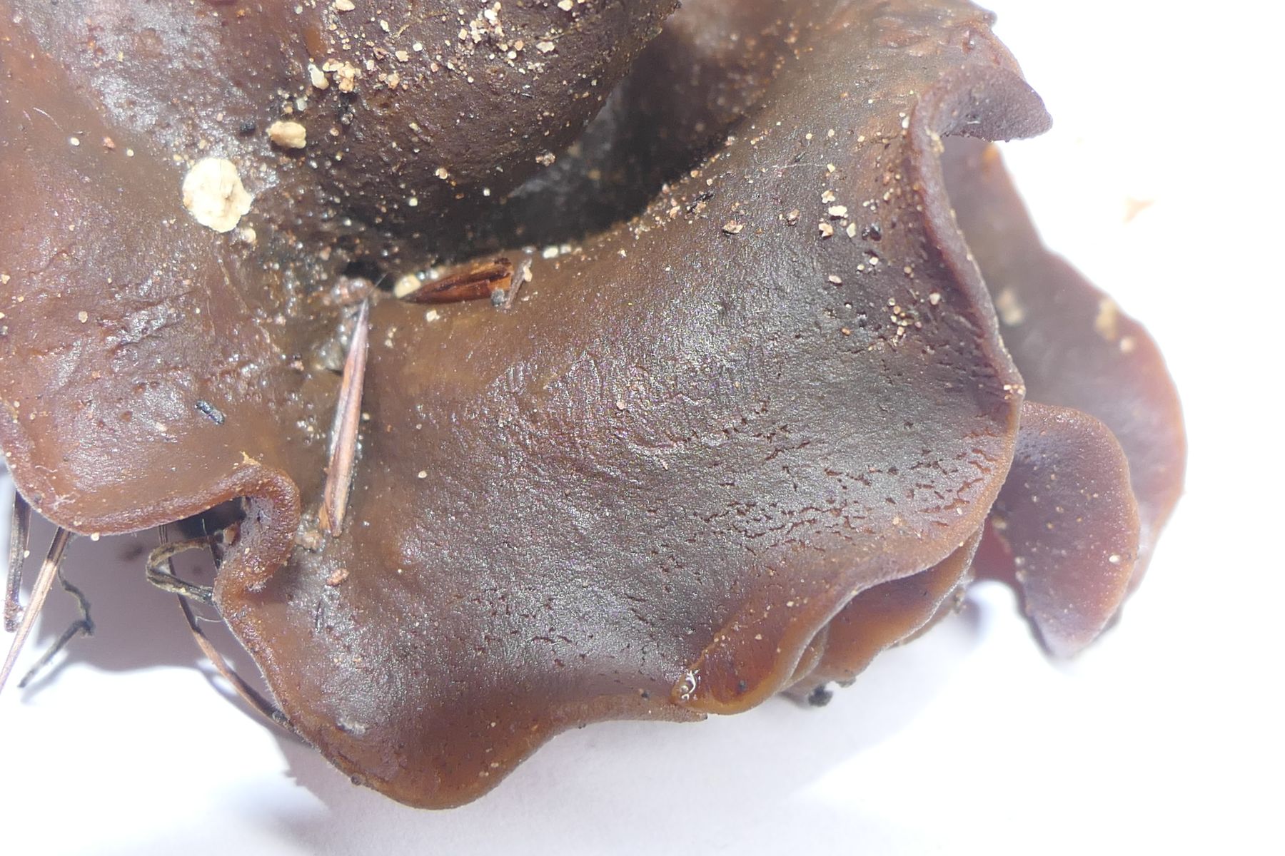05 Paragalactinia michelii cf. - der gelbfleischige Lila-Braunparaphysenbecherling - mit großem Fragezeichen