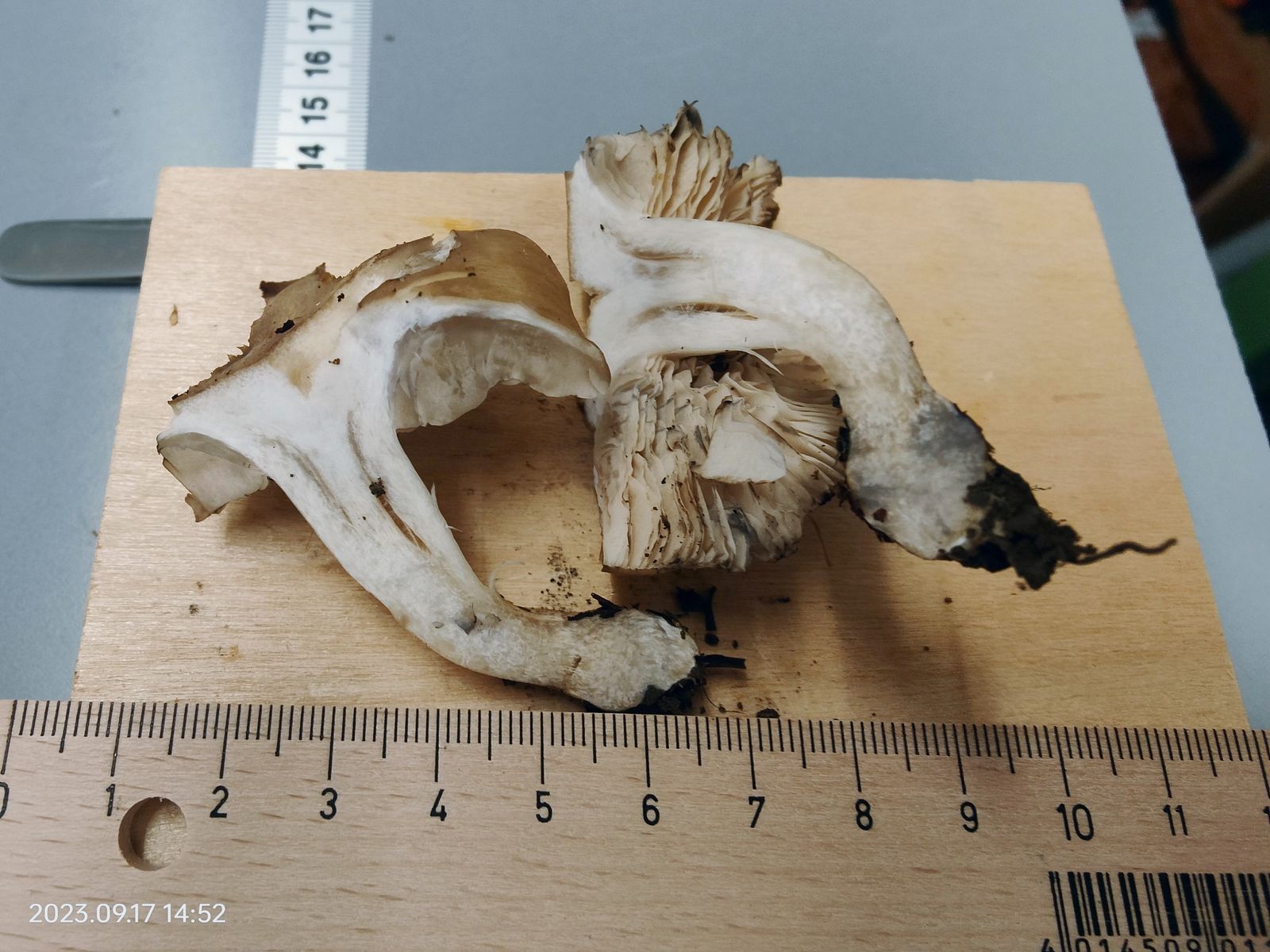 Aufgrund des verjüngten Steil und zuerst graublau und dann schwärzlich verfärben habe ich mich für Lyophyllum caerulescens entschieden.