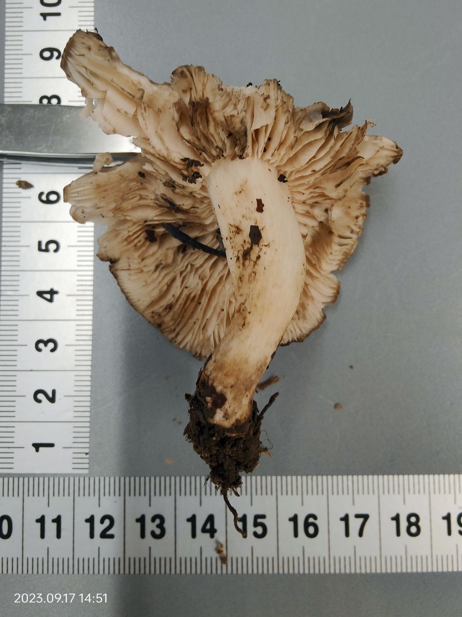 Aufgrund des verjüngten Steil und zuerst graublau und dann schwärzlich verfärben habe ich mich für Lyophyllum caerulescens entschieden.