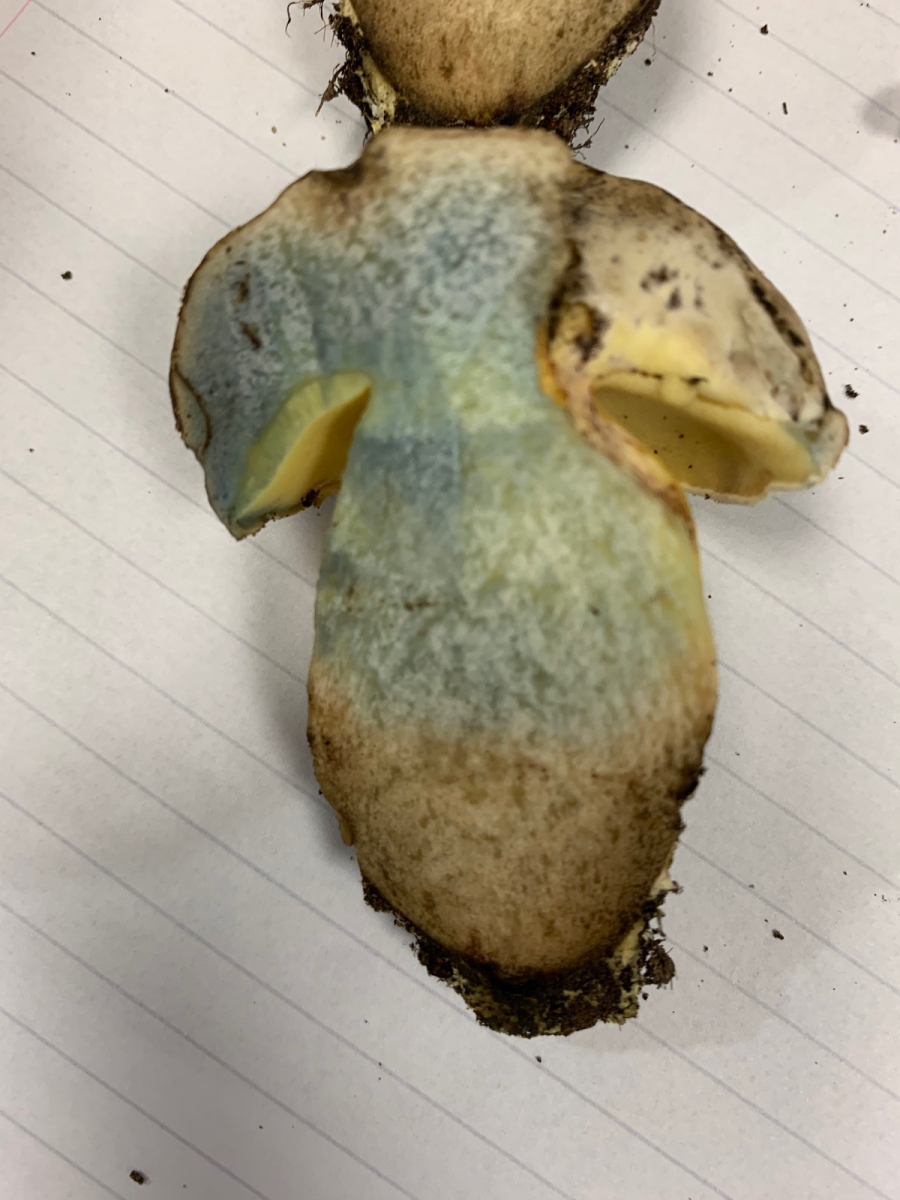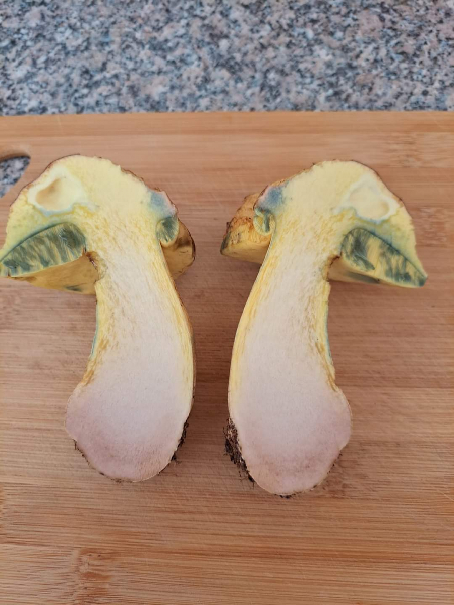 Heisst in Prinzip Matthias du müsstest das ding halbieren Dan sollte es beim silberröhrling im oberen Bereich blauen oder und im unteren Teil etwas rötlich sein oder. So wist sagst so is nur raterei lg.