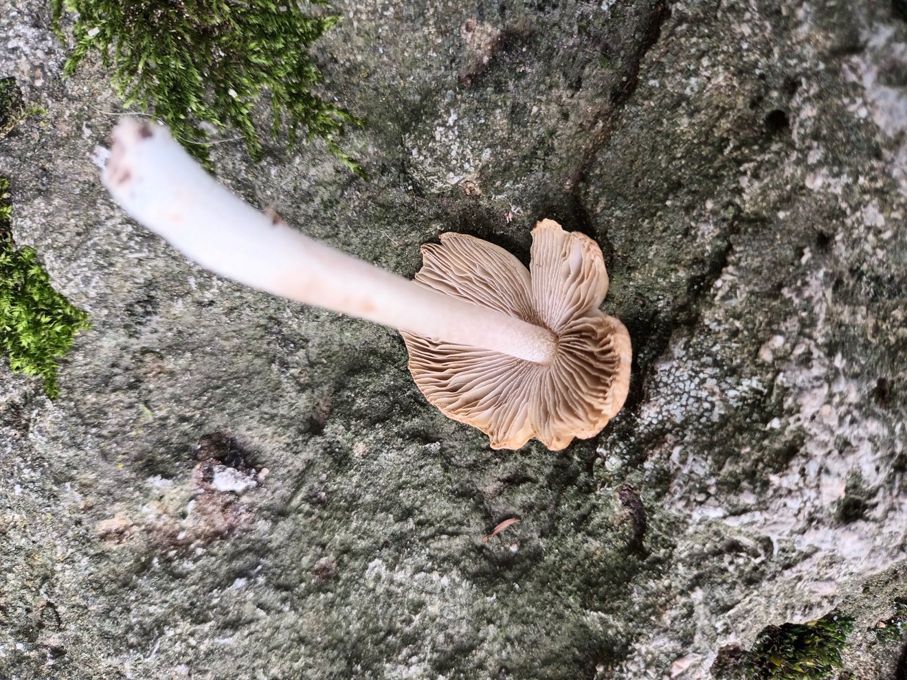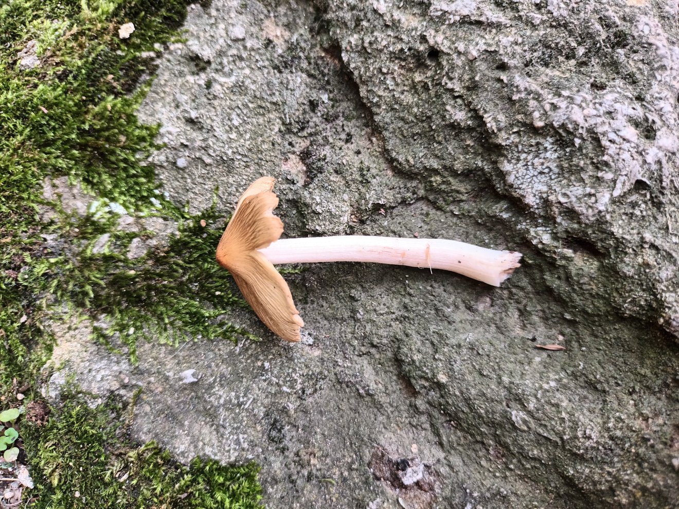 Leider ist die Stielbasis nicht vorhanden, habe sie nicht vollständig aus den Boden gelöst. Ob der Pilz eine kleine Knolle hat, kann ich also nicht mehr sagen.