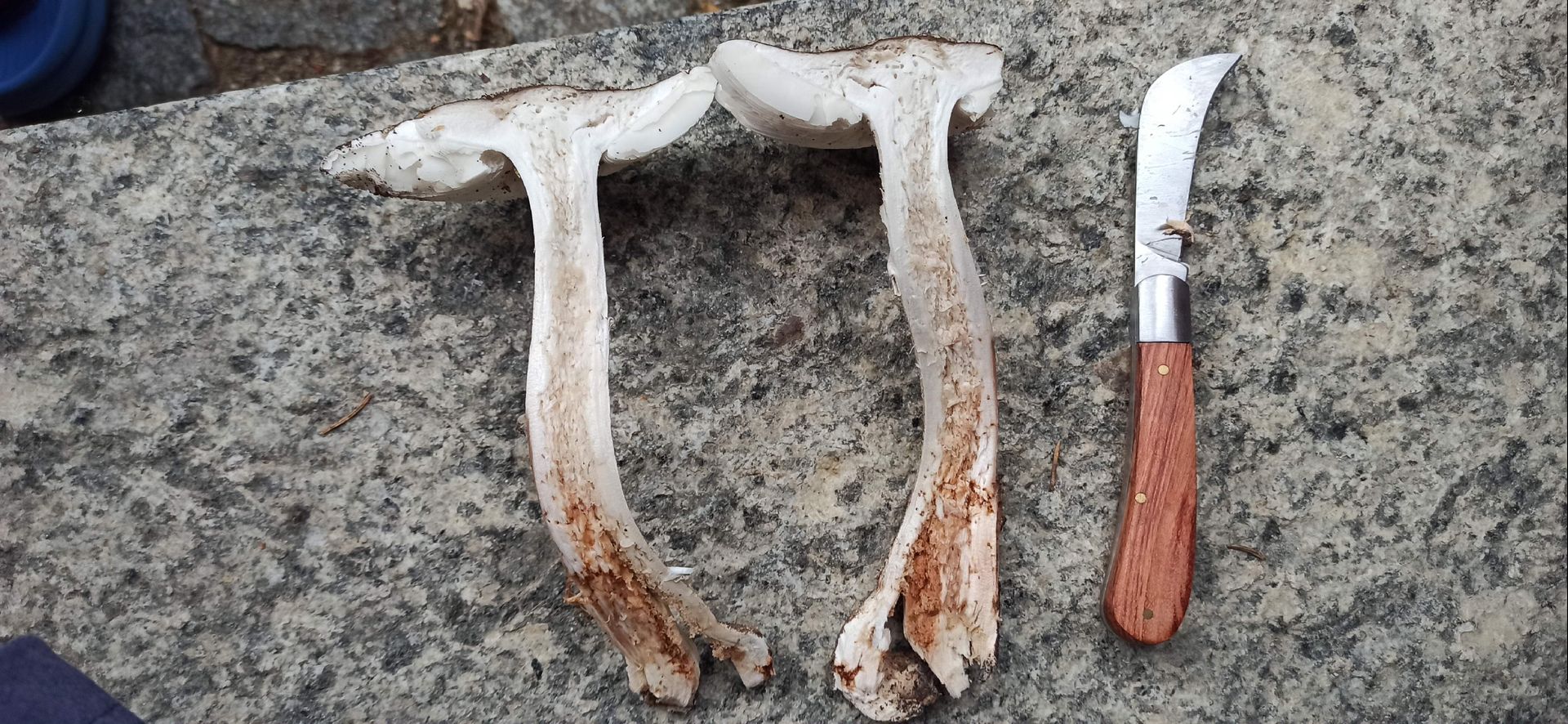 Ich habe heute im Wald eine Amanita gefunden, die von oben wie beim grauer Wulstling aussah, recht dunkel graunbrauner Hut mit grauen Velumresten. Beim anschneiden hat er sich sofort rötlich verfärbt. Unter dem Hut keine Rottöne, auch die Fraßstellen im Hutbereich, Stielansatz, keine Rotfärbung. Meiner Meinung nach total untypisch. Als haette die Amanita auf halbem Weg entschieden doch ein Grauer Wulstling zu werden. Geruch neutral. Wie seht ihr das? Lg Wastl