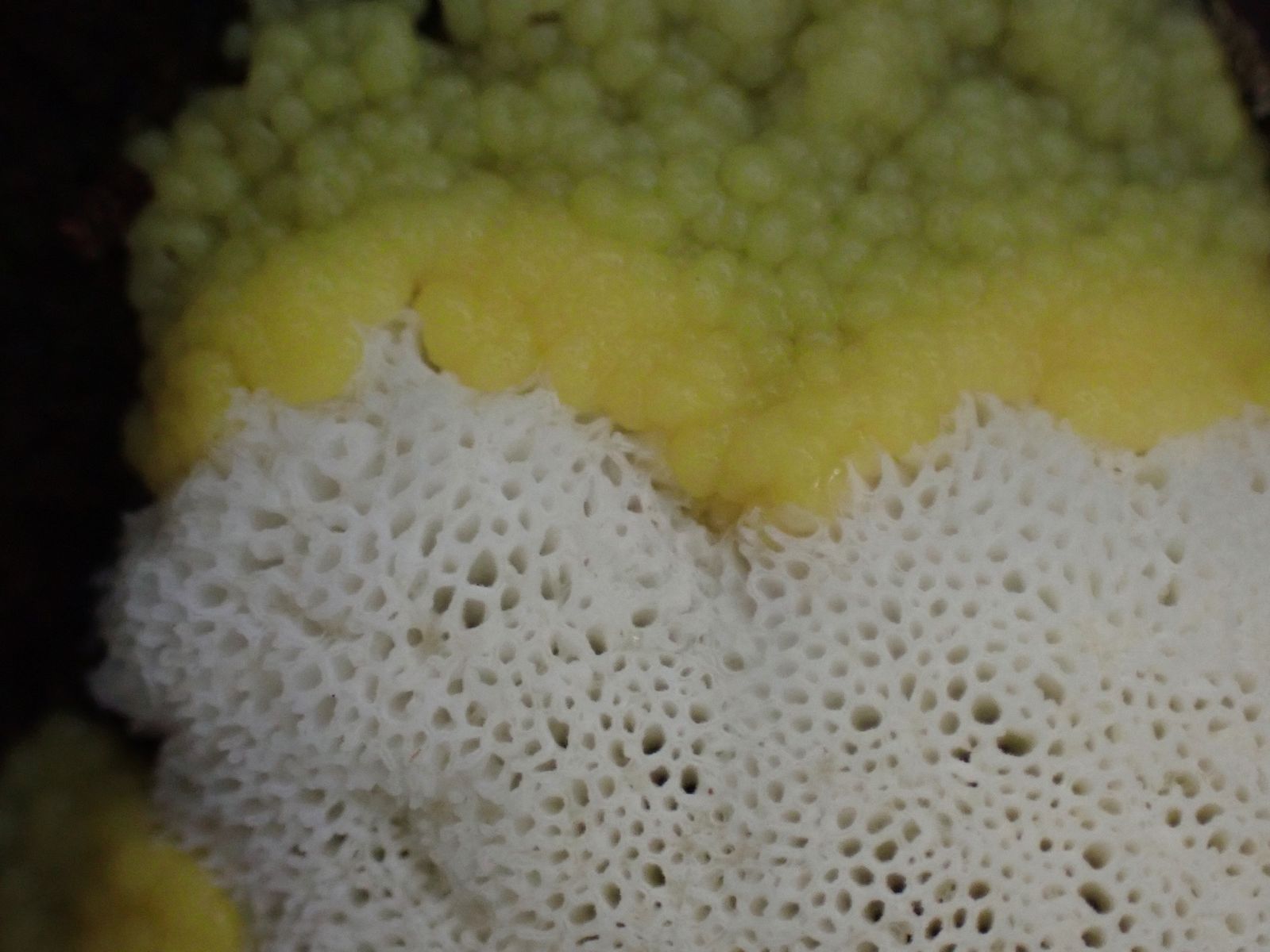 Ist das vielleicht Ceratiomyxa porioides in jung und gelb? Oder doch was anderes?