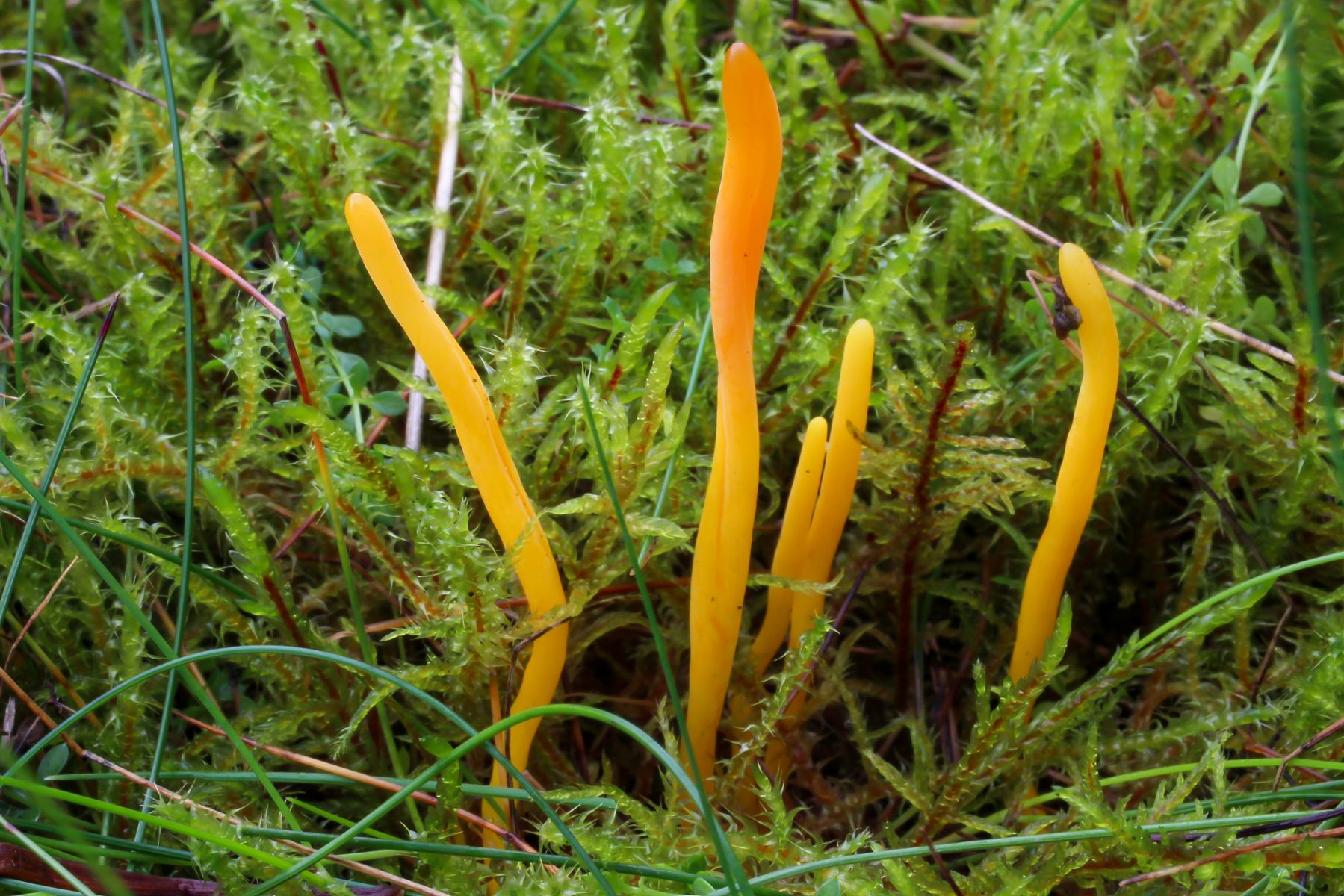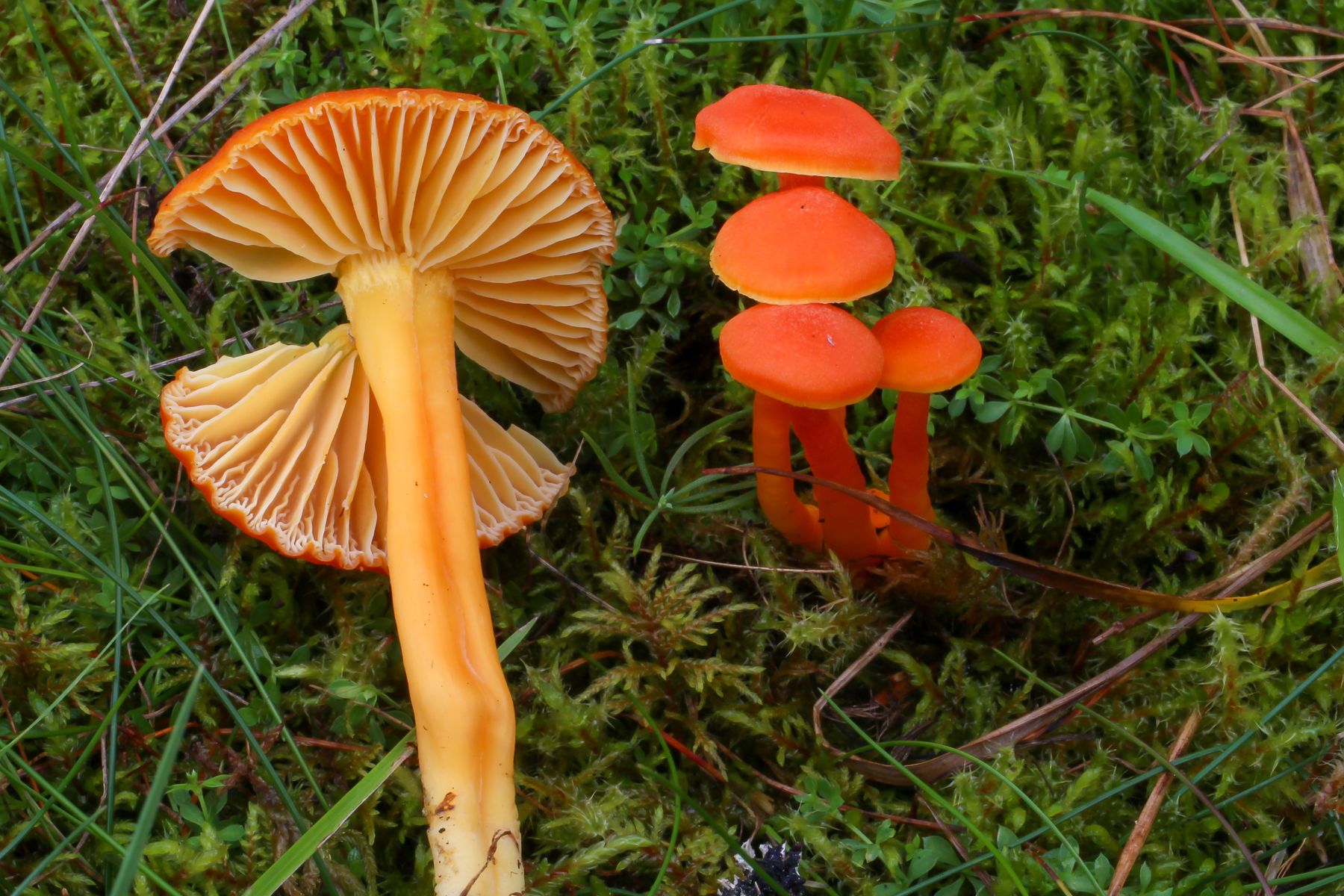 5) Hygrocybe miniata, auch am selben Standort: H. cantharellus, H. helobia