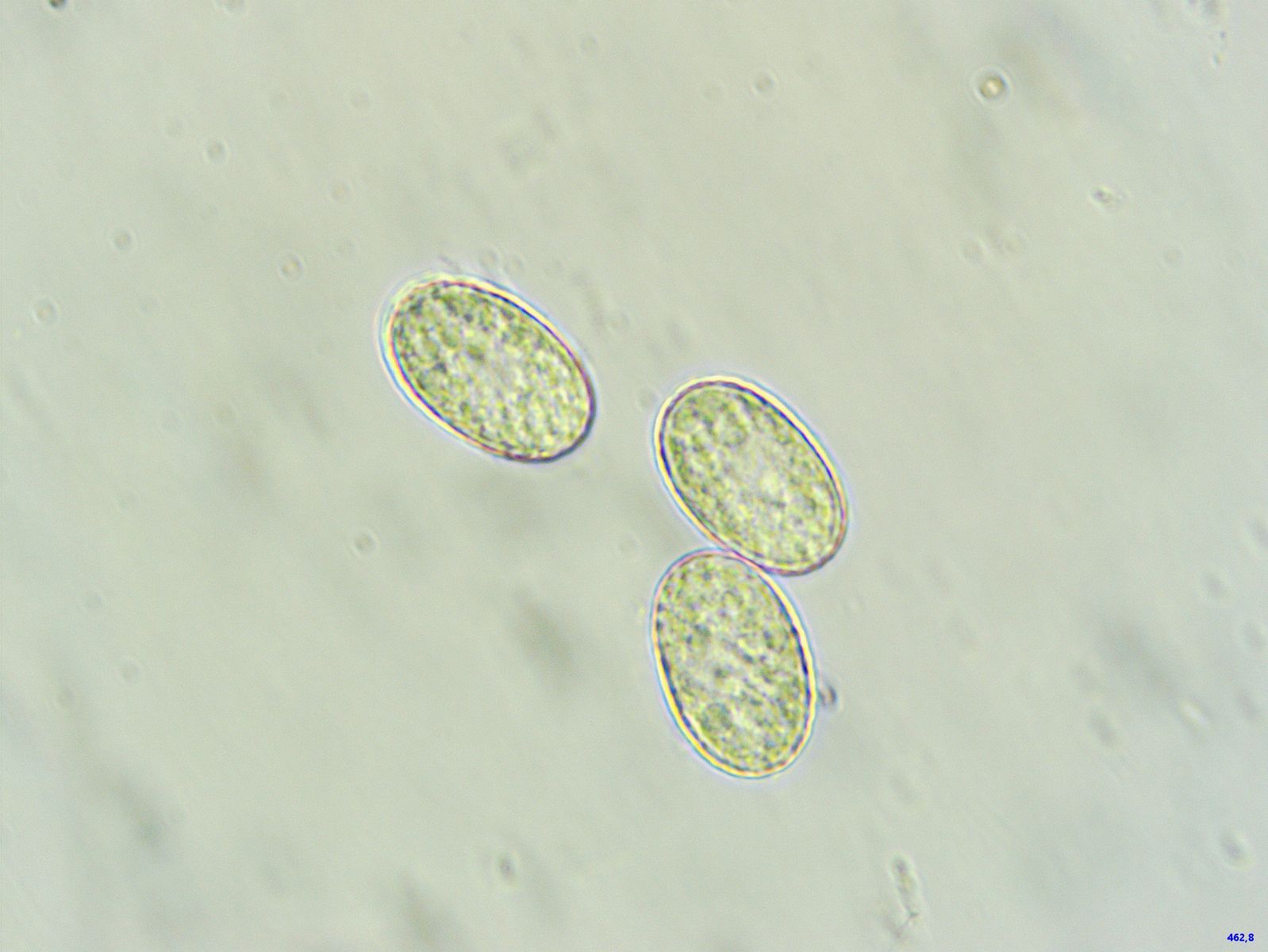 Sporen spumos mit Öl gefüllt, mit "refractive Area", ca. 20x11 Mikrometer.