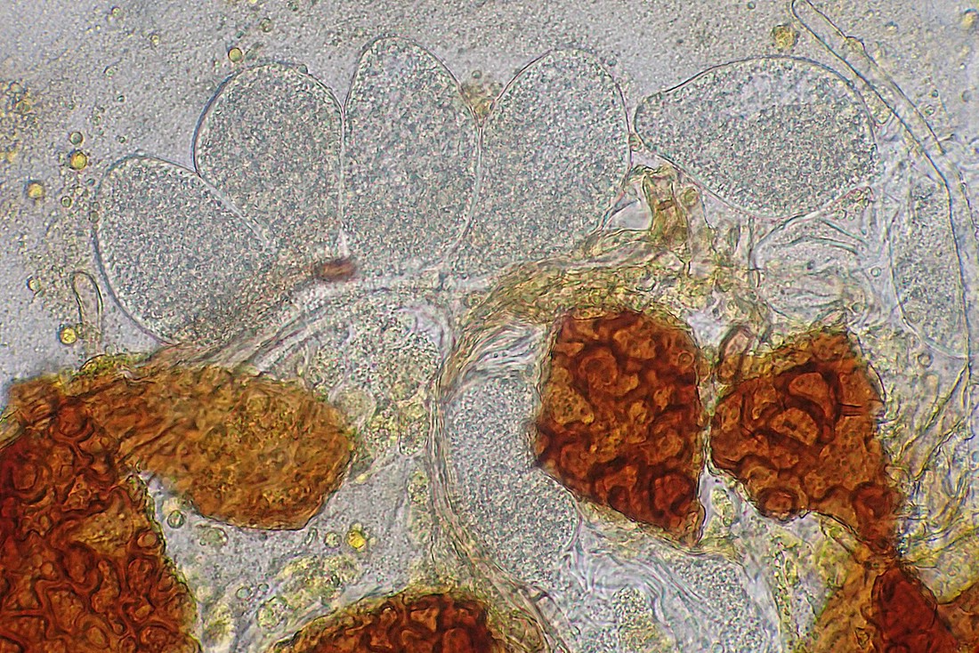 Die Asci sind idR zweisporig, was man auf dem folgenden Bild sehen kann, wenn man genau hinschaut.