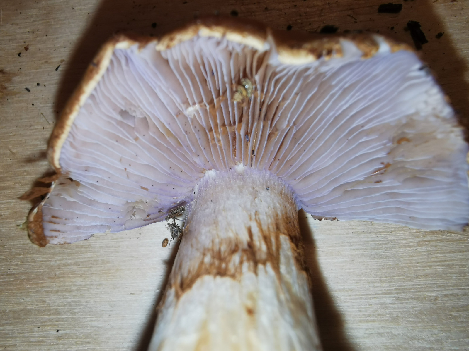 Vielen Dank für deine Antwort. Das mit dem violetten Ring hatte ich auch noch vom Kurs in Hornberg in Erinnerung. Beim Pilz haben auf einer Seite ein paar Lamellen gefehlt und da hat diesen Ring nicht gesehen, was mich etwas irritiert hat. Evtl. wurden die Lamellen und der Ring hier von etwas abgefressen oder er ist ausgebleicht, was meinst du? Ich meine auch noch schwach in Erinnerung zu haben, dass dieser Ring auch mal ziemlich schwach ausgeprägt sein kann. Kann er eigentlich auch mal fehlen?
