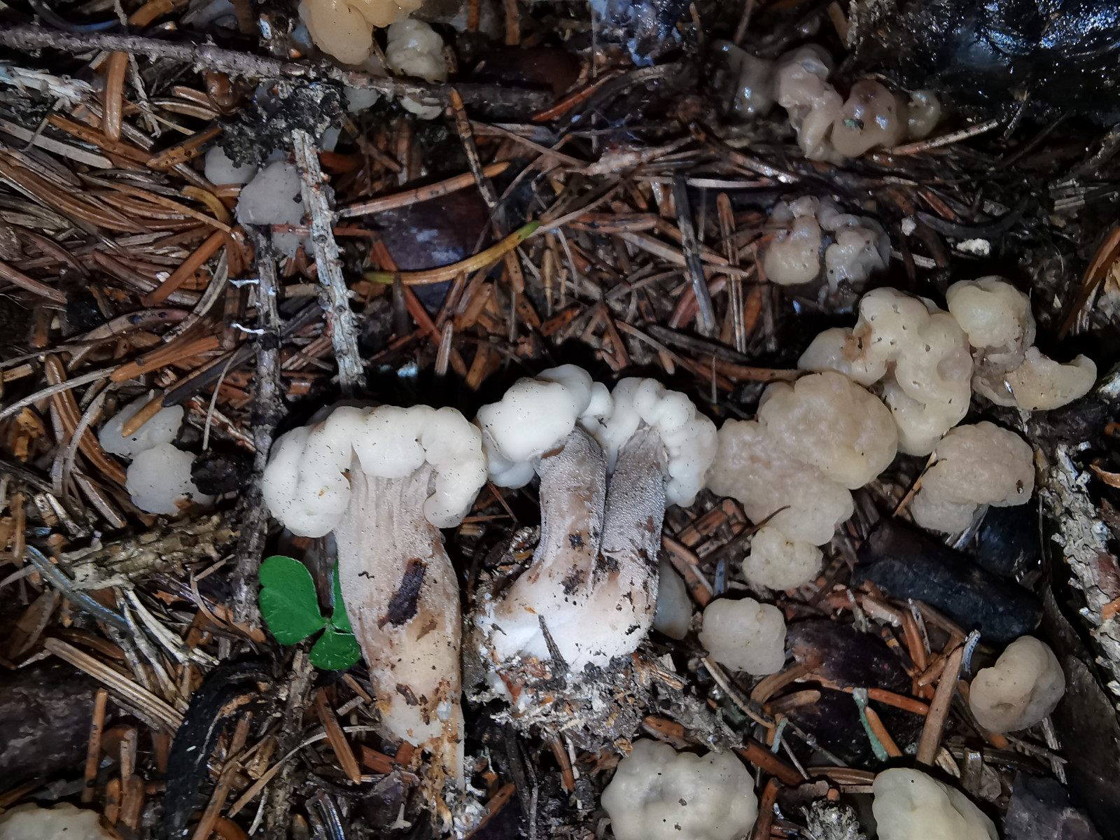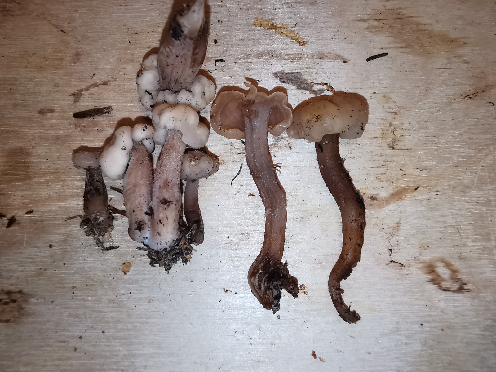 Ich kenne die beiden Arten zwar nicht aus eigener Anschauung, halte das aber für recht typische Helmkreislinge (Cudonia circinans).
