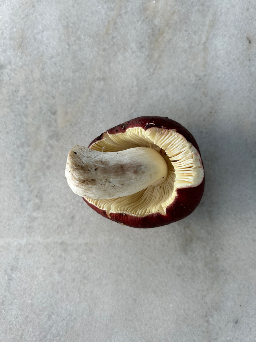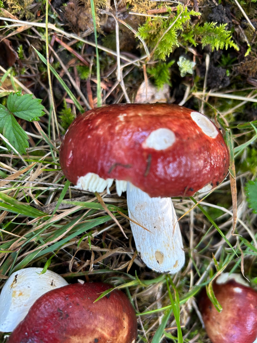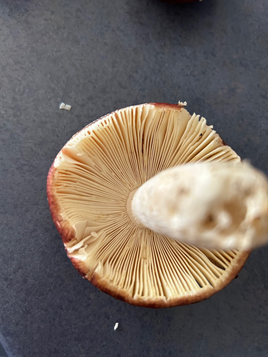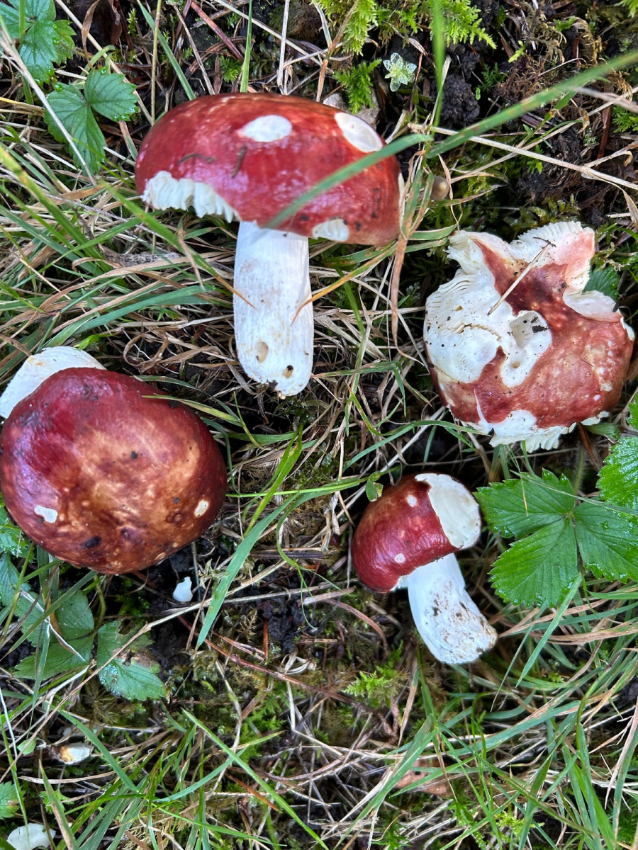 Allerdings waren die Hüte mehr matt und nicht so glänzend wie dein Pilz 2+3 was ja mehr für R. integra sprechen würde, auch die Stieloberfläche wurde bei denen an den Berührungsstellen und auch im Schnitt leicht gräulich. (Bild könnte ich liefern)