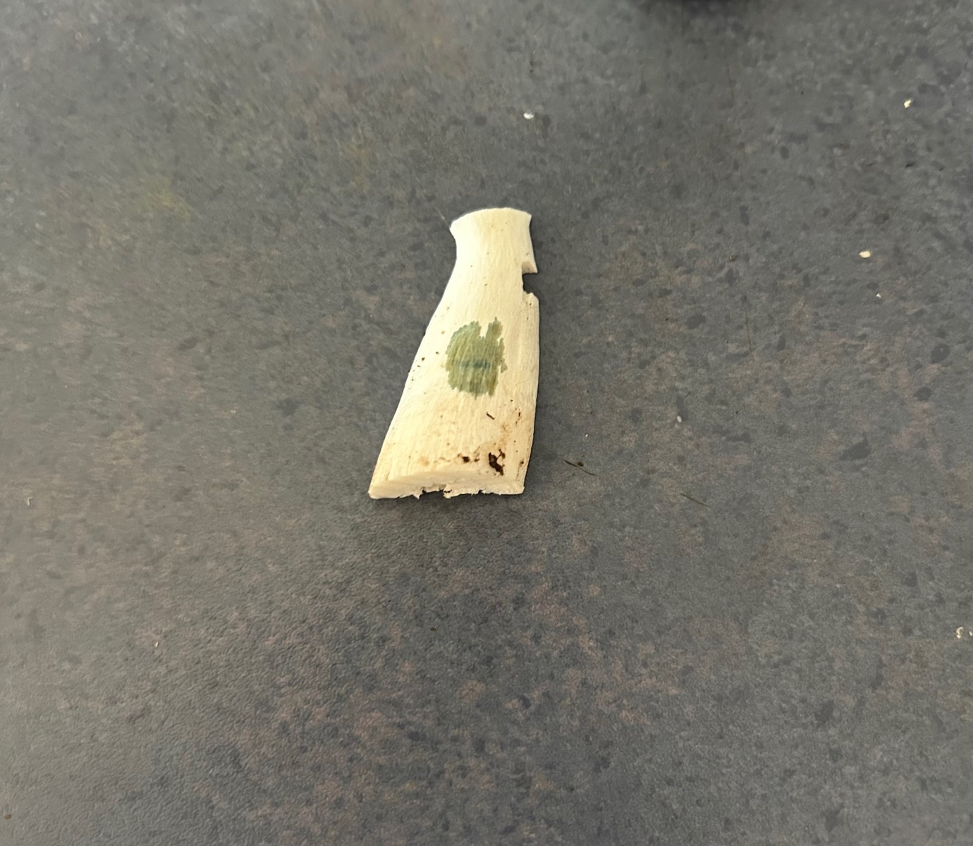 Lammellenschneiden: teilweise leicht gekerbt (kann jedoch aufgrund der Brüchigkeit zurückgeführt werden, farblich identisch