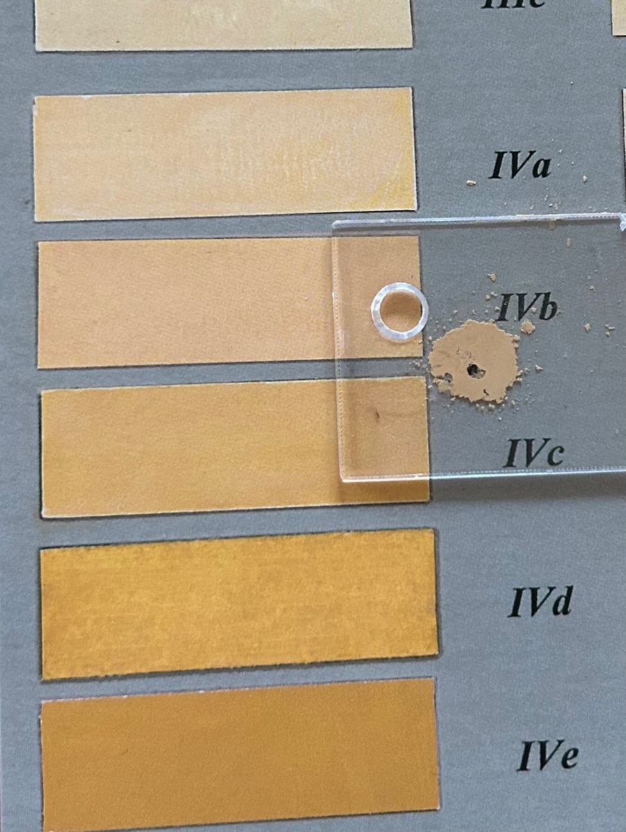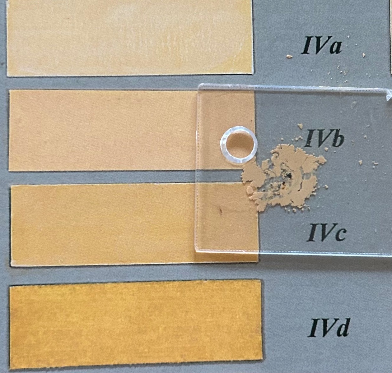 Guajak: nach ca. 2 Sek. kurz olivgrün, nach ca. 5 Sek. jedoch schlagartig dunkelblau (somit ++)
