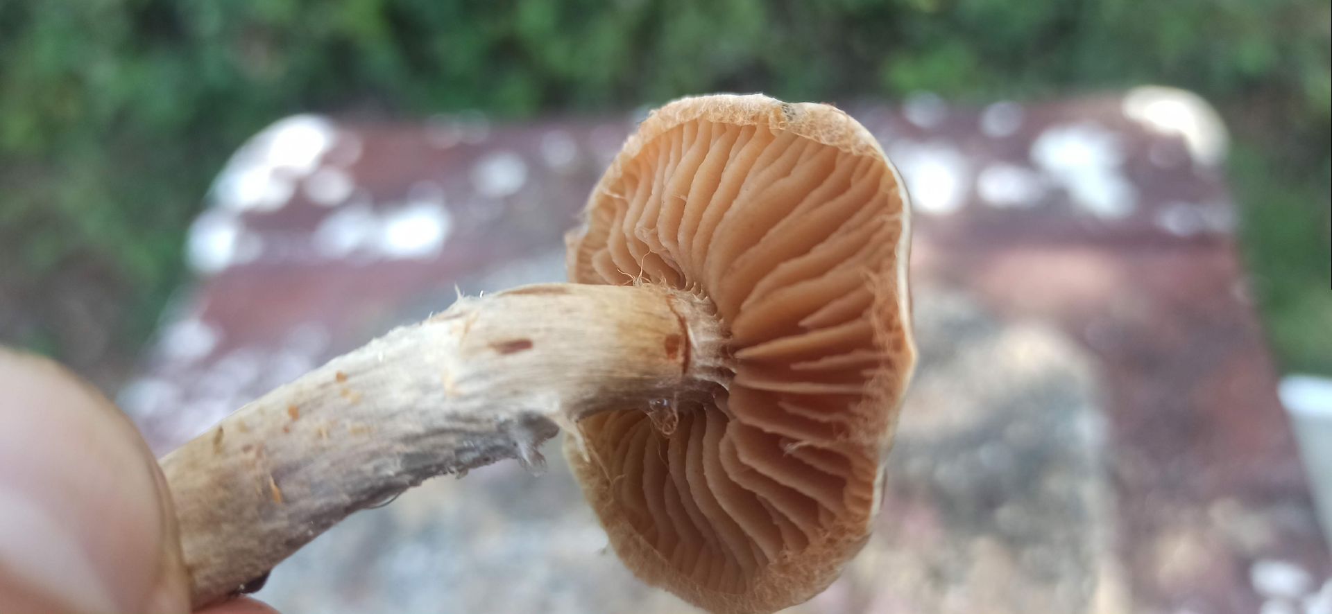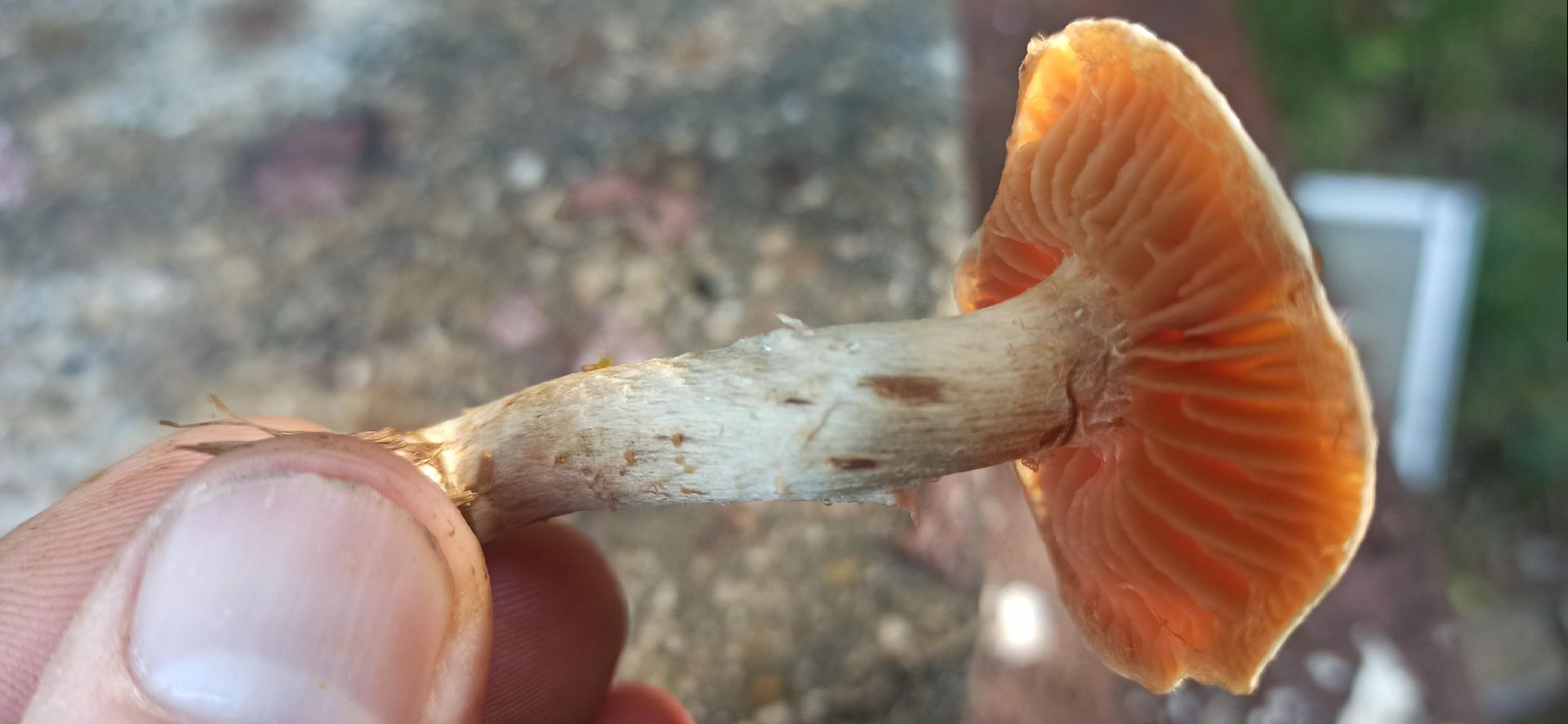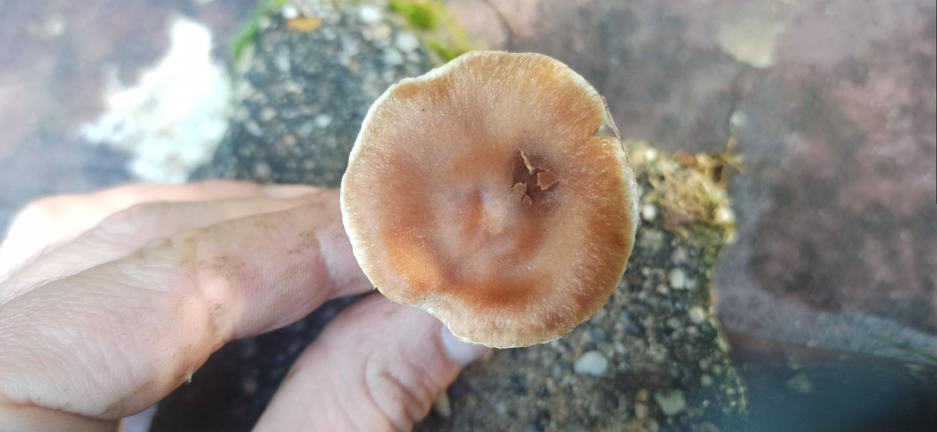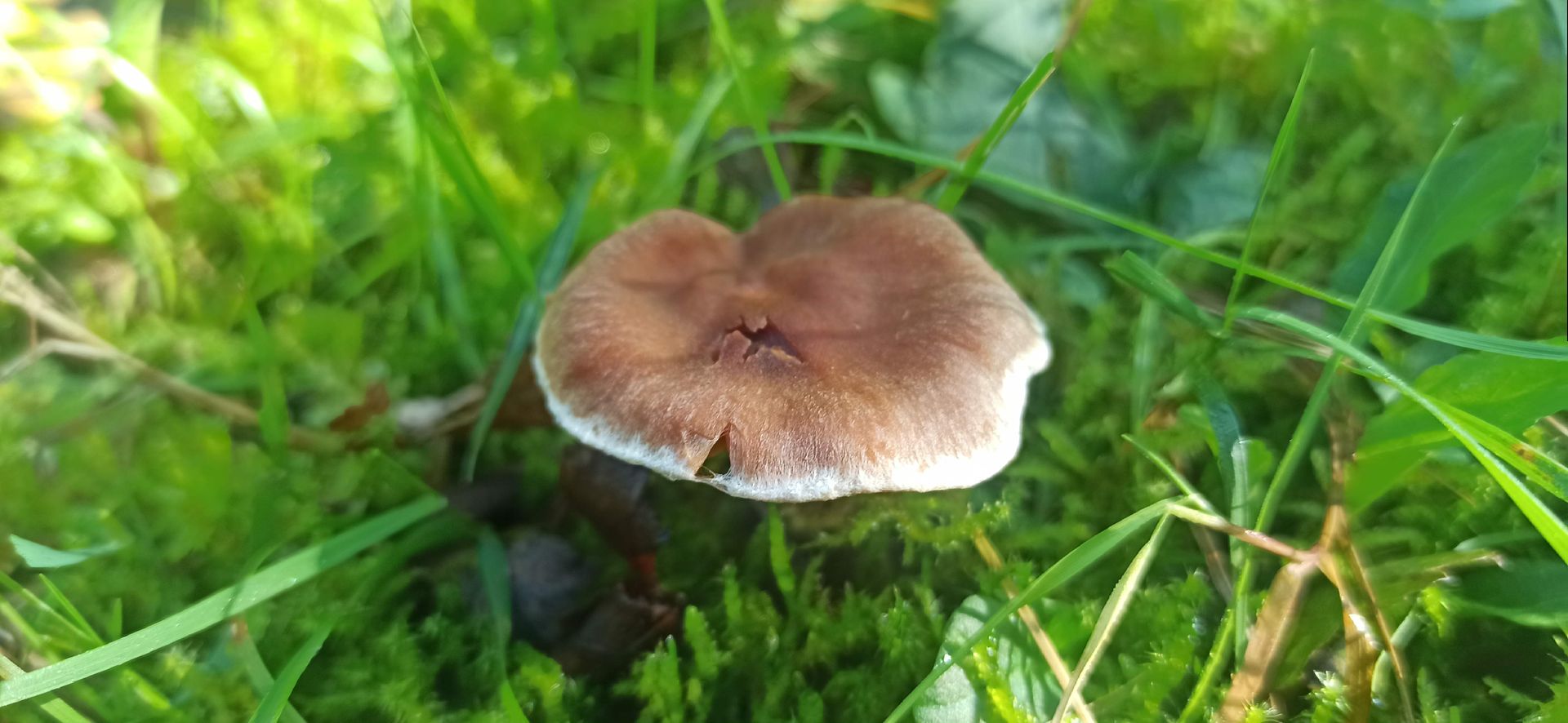 Ich weiß dass es schwierig sein könnte, aber vllcht habe ich einen gefunden, den man eventuell ohne Micro zuordnen kann. Fundort zwischen Sch Lehen Büschen, 2 Eichen in der Nähe oder Weißdorn. Aus der flachen Wiese, bemoost entspringend. Geruch erdig. Rand weiß, hygrophan? Ein Gürtelfuß? Lg Seb