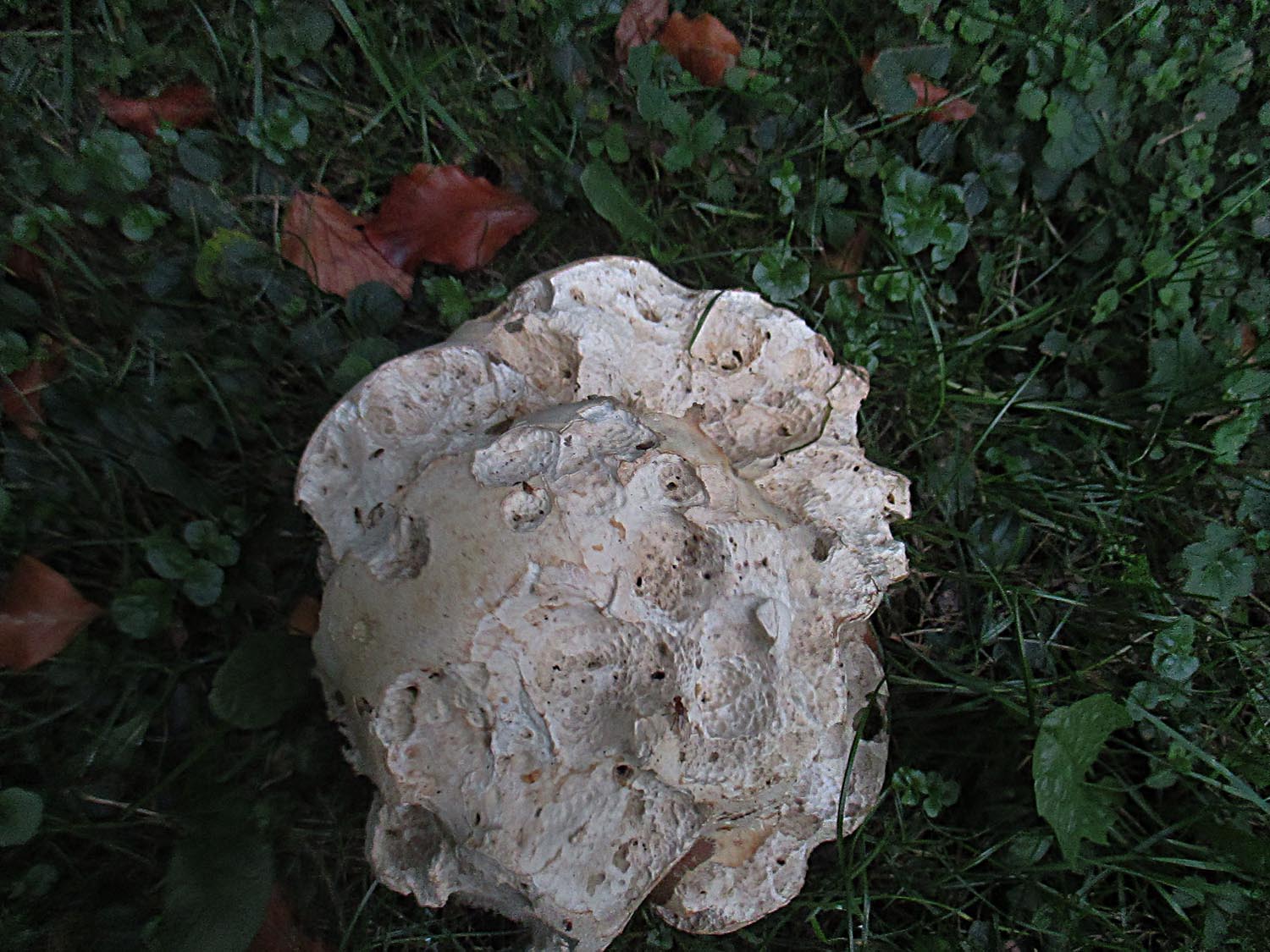 Auf einer anderen Wiese stand ein schon halb zerfressener Riesenbovist herum.