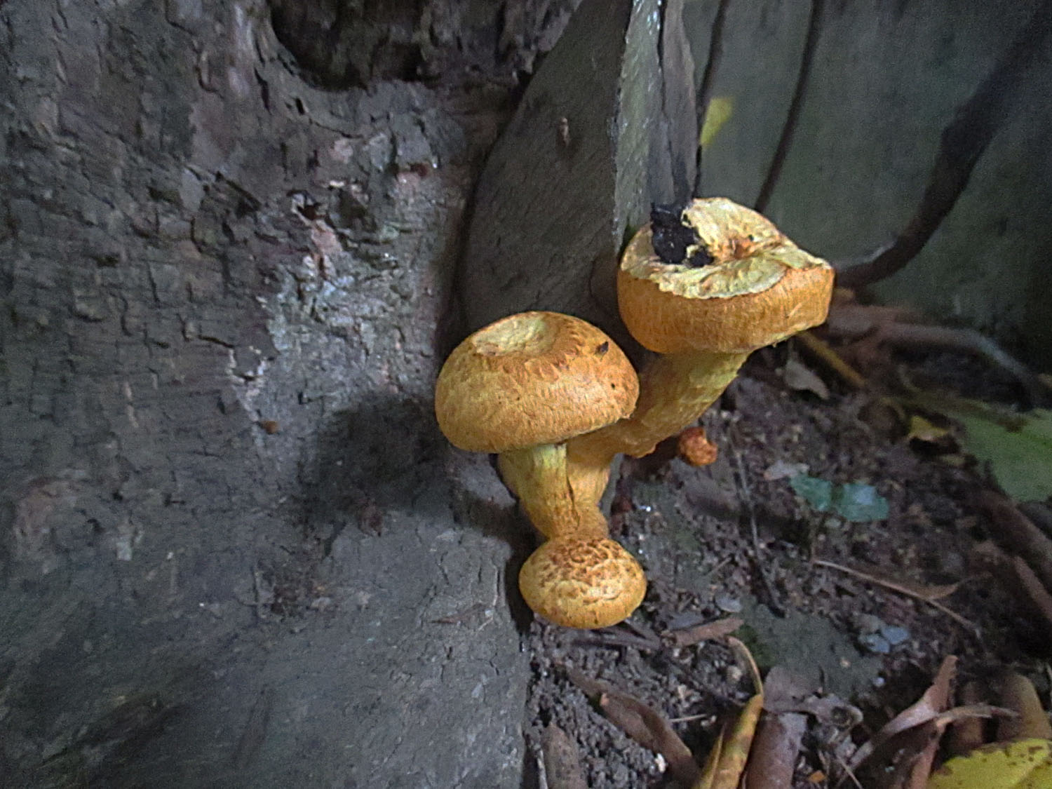An Rhododendron hatten sich ein paar Schüpplinge breit gemacht. Ich habe sie Pholiota aurivella getauft ohne zu wissen ob sie wirklich auf diesen Namen hören.