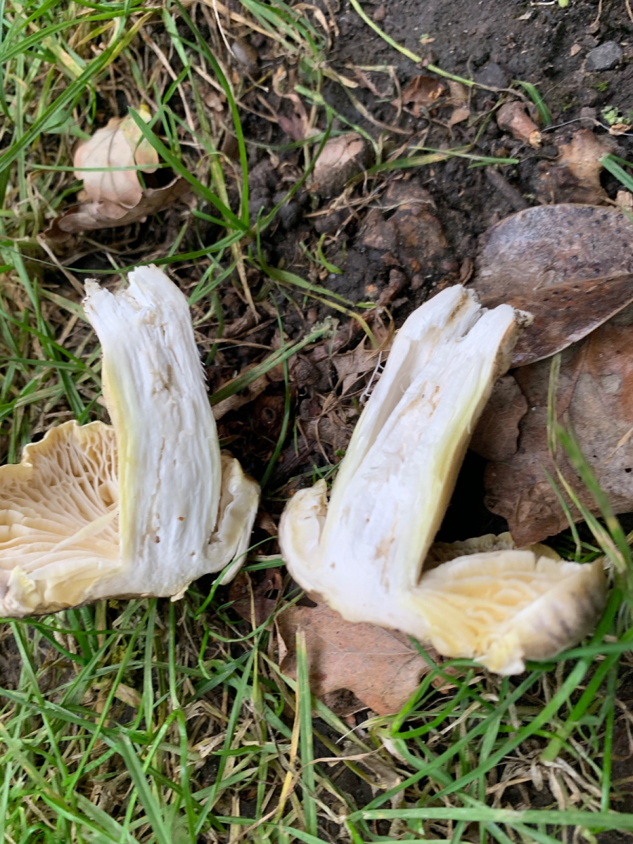 Habe heute diesen Pilz in York direkt unter Eiche gefunden, Kiefer an die 20m entfernt. Der Hut ist schwarzfaserig, Stiel und Lamellen weiß gelblich. Er riecht für mich undefinierbar angenehm. Ist das der schwarzfaserige Ritterling?